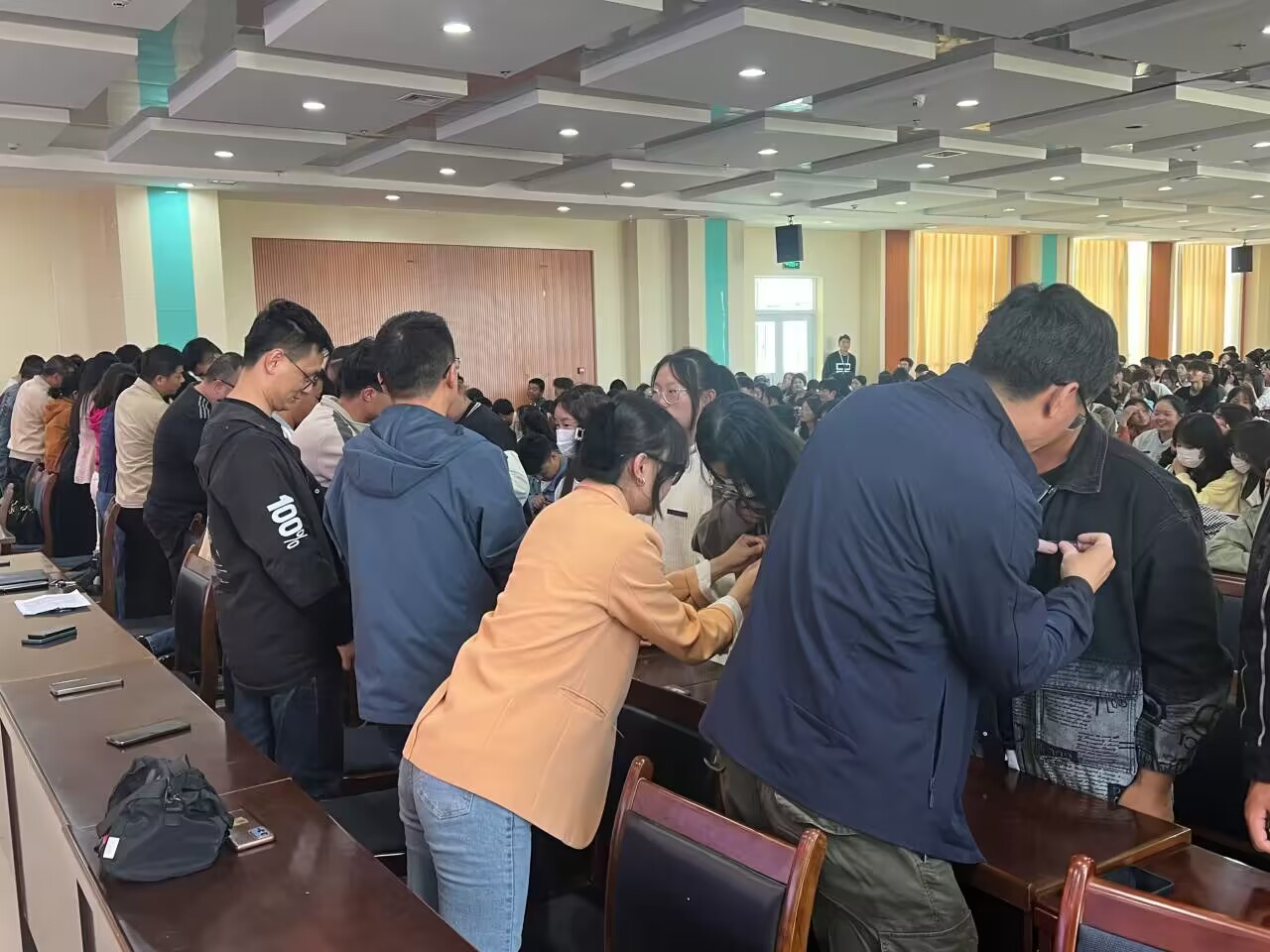 随后学院领导和老师为新生代表佩戴校徽。校徽是一所学校的鲜明标志,寓意着学校精神的传承。徽章戴在胸前,“酒职人”的身份从此刻开启,这既是荣耀加冕,亦是重任在肩。同学们将心怀家国,不忘初心,传承校训“修身笃学,精艺尚能”,发扬“扎根大漠,荫泽苍生”的胡杨精神,共筑“勤学善悟,学做合一”的学风,踔厉奋发、笃力前行。