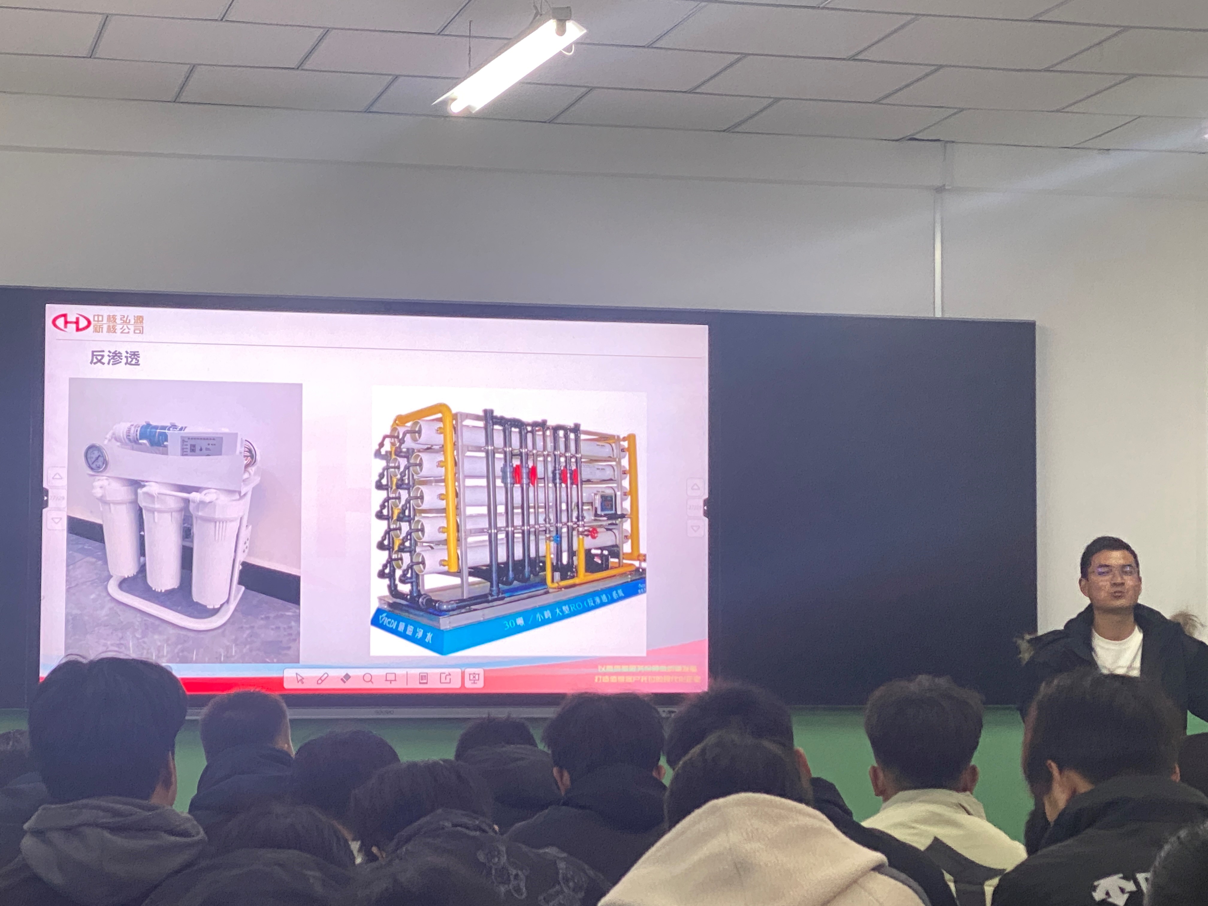 首先,桂万雄主任以中核弘源新核公司的基本情况和运行五部主要岗位和工作内容进行了介绍,包括公司基本状况、经营情况、业务来源、部门设置和员工发展等内容。针对同学们对于自身专业未来的发展问题,以自己的从业经历从技术化、能源化和智能化三个方面进行了介绍,使同学们产生了浓烈的兴趣。接着,桂万雄围绕“化承天下、工载未来”的角度,讲解了科技是支撑绿色发展的有力武器,是建设能源科技强国的的关键支撑,使同学们更加了解了科技对国家的重要性。