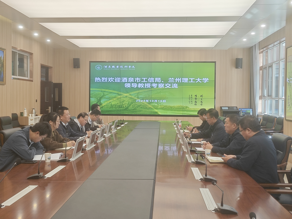 2024年10月16日上午,酒泉市工业和信息化局党组成员、副局长李伟和兰州理工大学石油化工学院教授、博士生导师李贵贤一行6人来我校考察交流,学校党委委员、副校长王金明及培训处、化工学院相关负责人陪同考察。