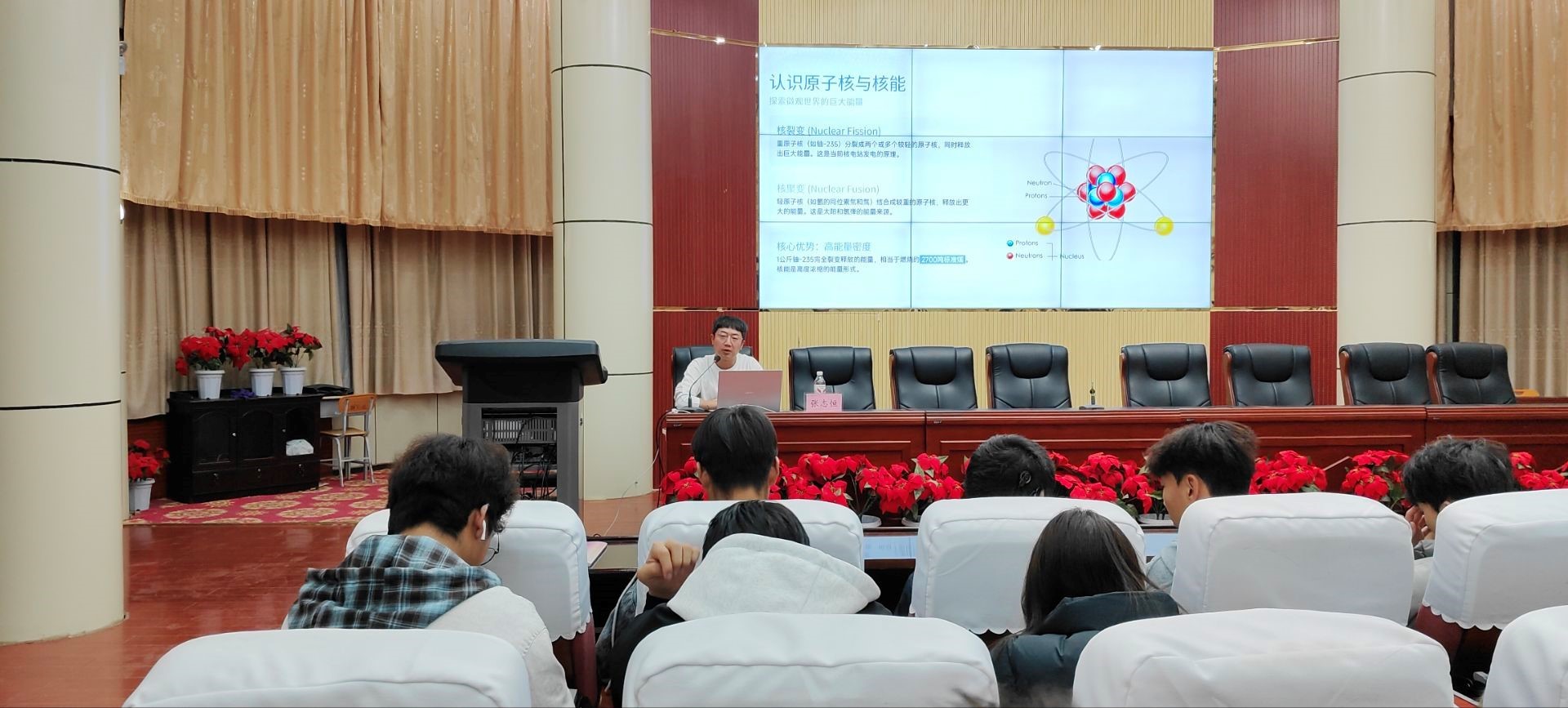 讲座中,张志恒主任从原子核基础理论切入,结合丰富案例,系统阐述了核能在国家能源战略中的核心地位,清晰梳理了全球与我国核能发展的历程、现状与前沿突破,为师生搭建起连接理论知识与行业实践的桥梁。现场学习氛围浓厚,师生围绕行业热点踊跃交流。