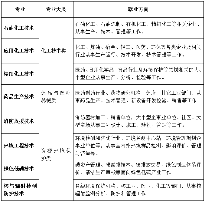 化工学院化工类专业有30多年的办学历史,现有在校生1500多人,开设应用化工技术、石油化工技术、精细化工技术、药品生产技术、环境工程技术、消防救援技术、绿色低碳技术、核与辐射检测防护技术等8个专业;应用化工技术专业是酒泉职业技术大学第一批本科专业之一,是国家示范院校和骨干院校建设项目重点建设专业,是甘肃省优质高等职业院校特色专业;累计培养化工人才8000余名。