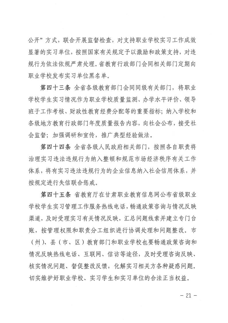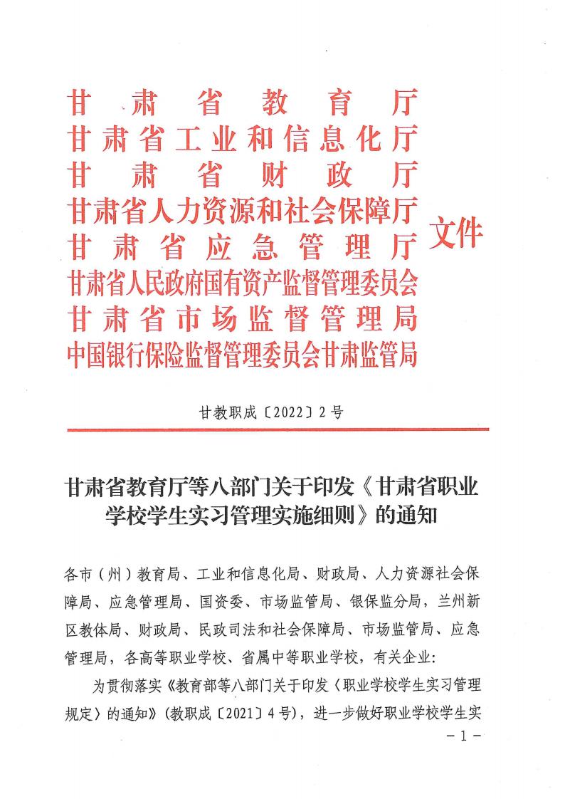 甘肃省教育厅等八部门关于印发《甘肃省职业学校学生实习管理实施细则》的通知