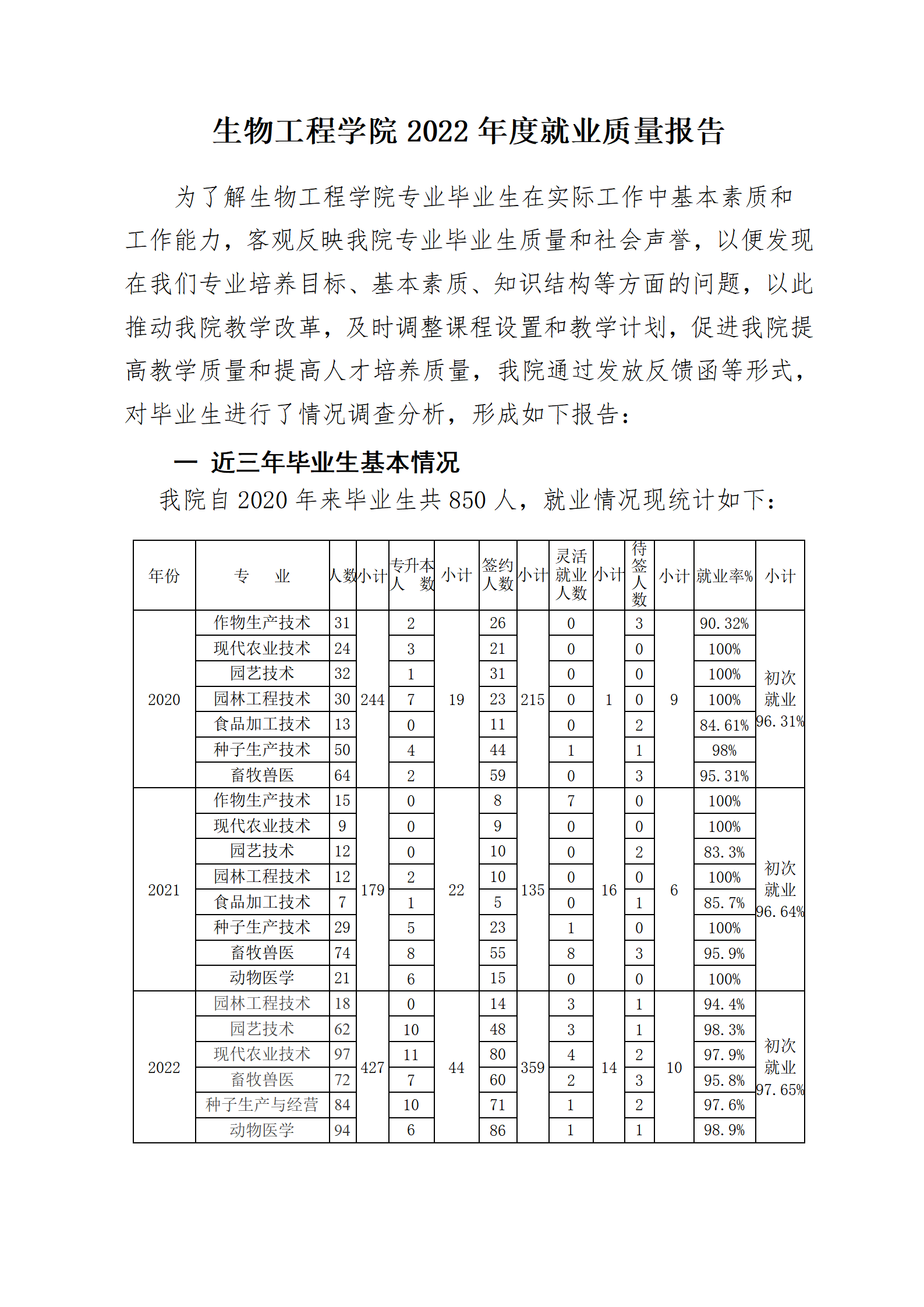生物工程学院2022年度就业质量报告