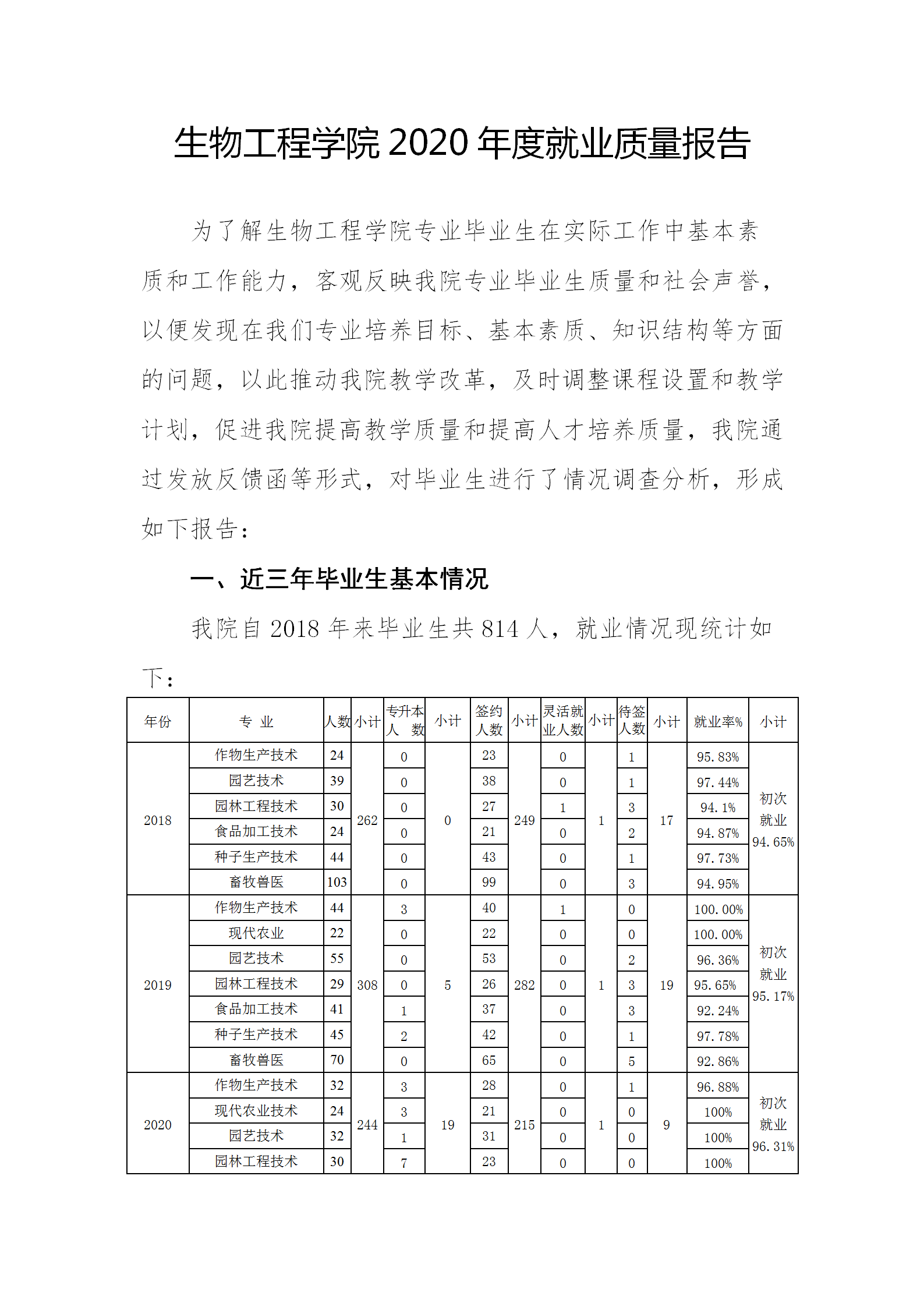 生物工程学院2020年度就业质量报告
