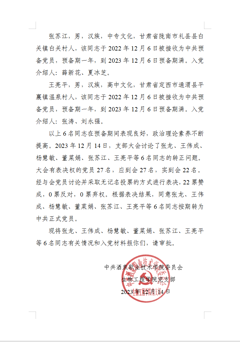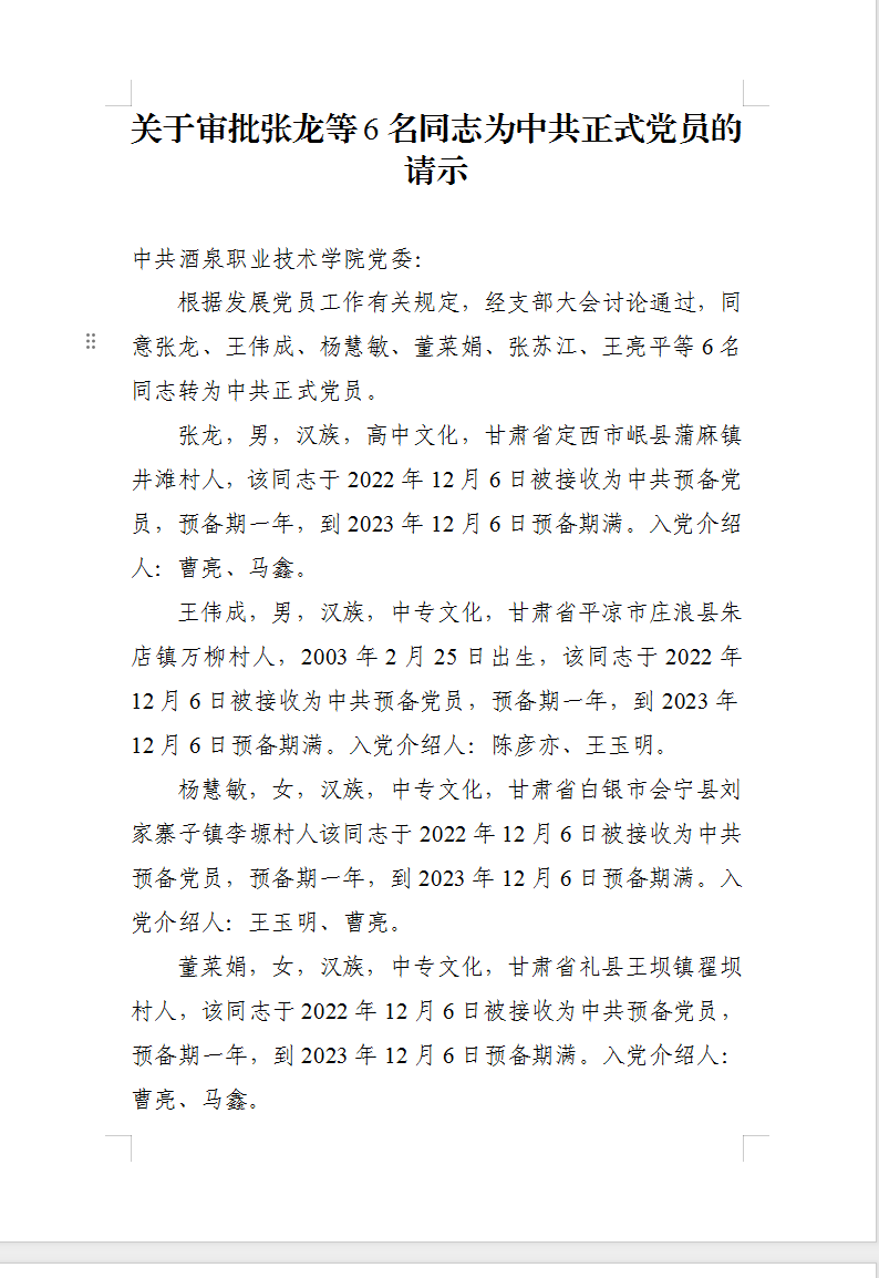 关于拟将张龙等6名同志转为中共正式党员的公示