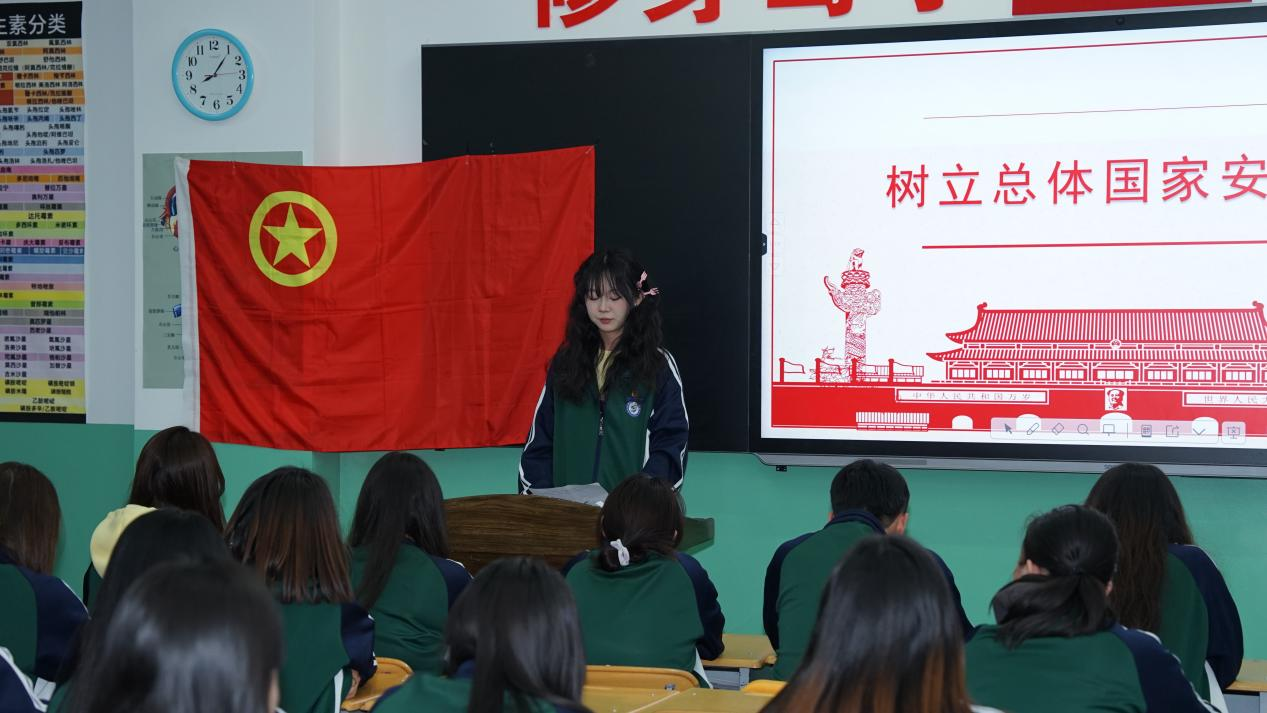 各团支部以“认识国家安全”为切入点,通过生动的图片、详实的数据资料,系统地向同学们介绍了涵盖政治、国土、军事、经济、文化等方面的国家安全领域。同学们犹如踏上一场知识的奇妙旅程,了解到国家安全并非单一维度,而是一张紧密交织、全方位覆盖的防护网,它渗透于国家发展、社会生活的每一个细微之处,守护着国家的稳定与繁荣,让大家对“国泰民安”背后蕴含的多元保障有了全新认知。