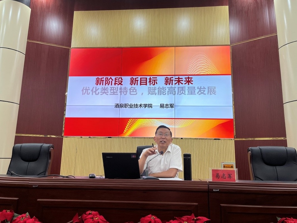 2022年7月17日,甘肃省职业院校教师素质提升计划培训项目完美收官,为升华培训内容,强化学员职教理念,特邀酒泉职业技术学院党委书记、校长易志军教授为培训班学员开展了《新阶段、新目标、新未来---优化类型特色,赋能高质量发展》专题讲座。培训班全体学员及旅游与烹饪全体教职工参加。