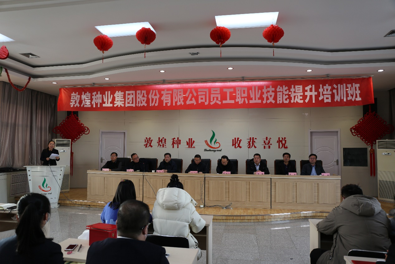 院系动态 > 正文2023年1月14日下午,由敦煌种业学院主办的甘肃省敦煌种业集团股份有限公司员工职业技能提升培训结业典礼在敦煌种业玉米分公司会议室举行。酒泉职业技术学院党委书记、校长易志军,甘肃省敦煌种业集团股份有限公司副董事长、总经理、敦煌种业产业学院理事张绍平等校企双方领导和培训班130名学员参加了结业典礼。