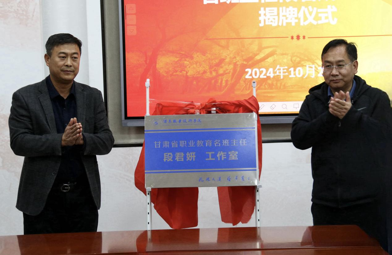 为进一步发挥名师示范引领作用,提升班主任队伍素体,增强教育管理服务育人实效。10月22日,教育与艺术学院在行知楼七楼会议室举行甘肃省职业教育“名班主任段君妍工作室”揭牌仪式暨工作室创建情况汇报会议。学校党委委员、副校长施荣,学工部副部长、学生处副处长刘明,以及教育与艺术学院全体教师参加了会议。会议由教育与艺术学院党支部书记、院长赵多生主持。