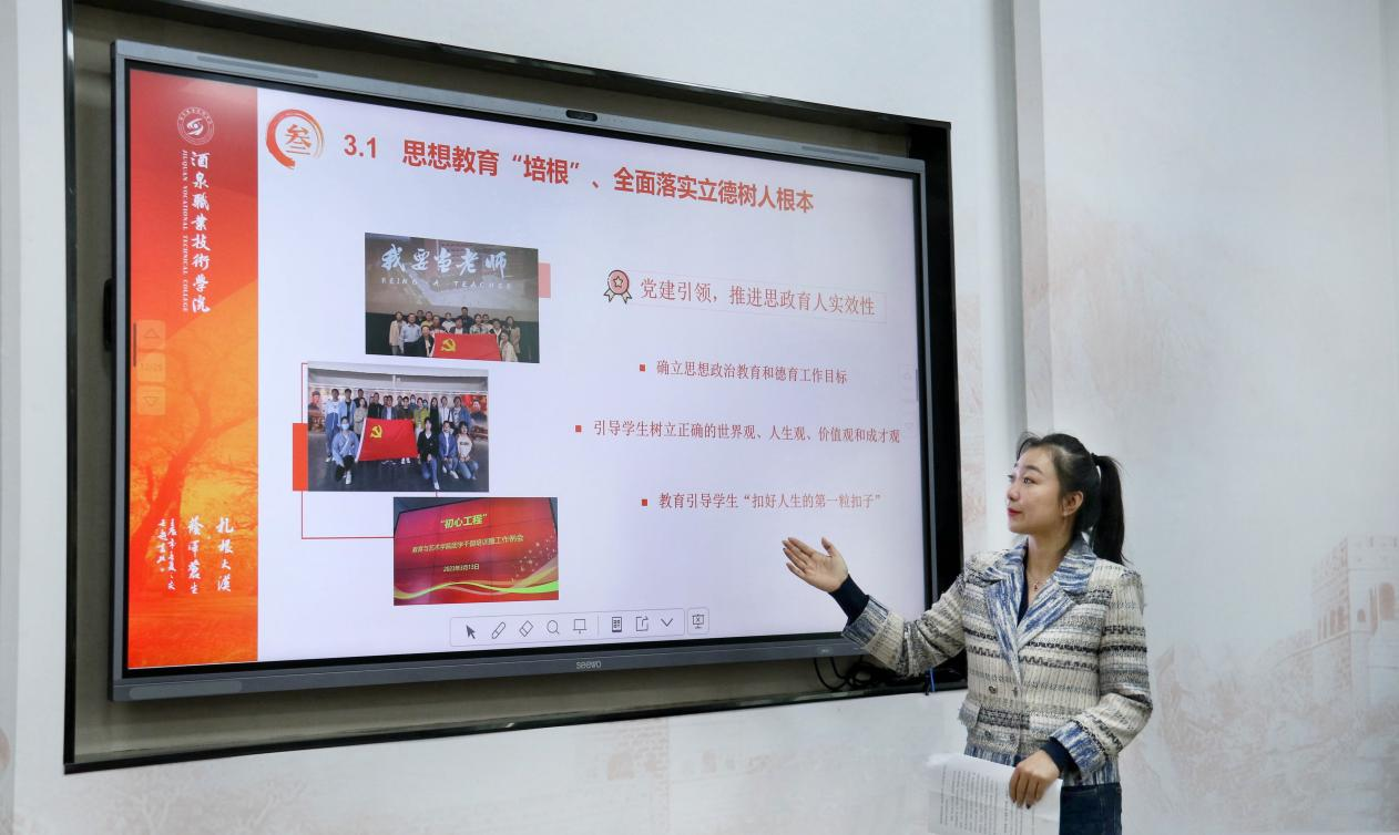 段君妍老师以“筑牢职业教育根基,夯实学生管理共育”为题,从“班主任工作室建设理念”“班主任工作室定位、目标及作用”“学生管理工作实施举措”“今后发展及未来展望”等几个方面详细汇报了工作室创建基本情况及特色。