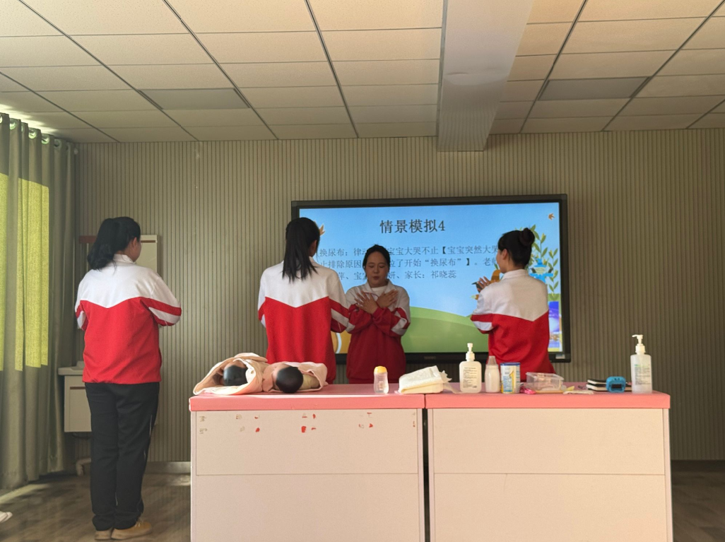 “婴幼儿照护赛项”以婴幼儿保育工作任务为导向,依据保育师工作要求和1+X幼儿照护职业技能等级证书核心技能要求,参赛选手从“评估-计划-实施”环节,现场展示“喂奶、拍嗝”等照护项目。