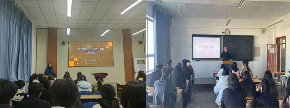 院系动态 > 正文为进一步加强学生安全教育和校园安全管理,增强师生安全防范意识,旅游与烹饪学院精心组织各班级召开了安全教育主题班会。本次班会聚焦“五防”教育,即防电信网络诈骗、防溺水、防交通事故、防暴力、防盗窃,并着重强调文明上网,致力于全方位提升学生的安全意识与文明素养,为构建平安和谐校园奠定坚实基础。