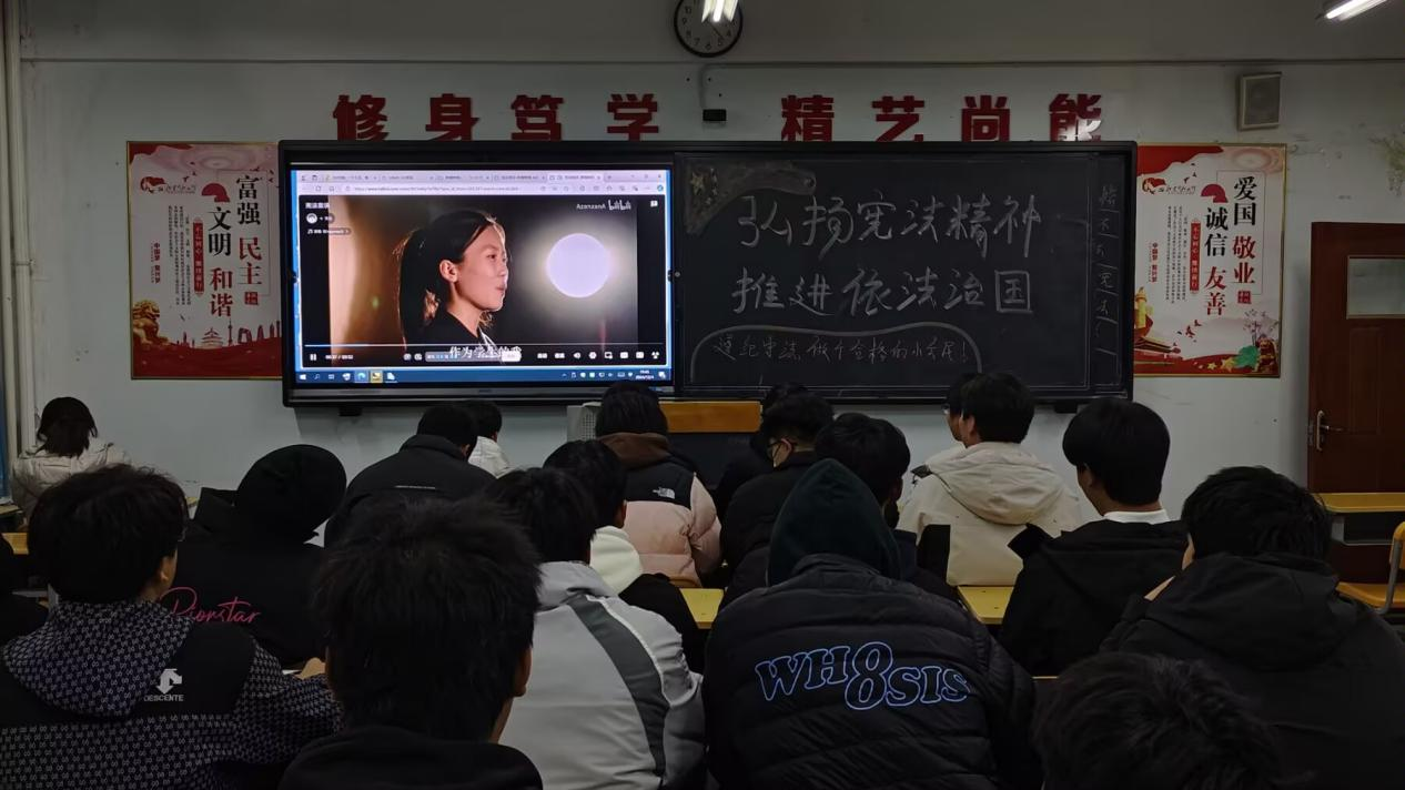 每天早自习,各班学习委员组织全班学生进行宪法晨读活动,同学们齐声诵读宪法条文,形成浓郁的宪法学习氛围。这一活动不仅增强了学生对宪法的认同感,也让宪法精神根植于每个人心中。