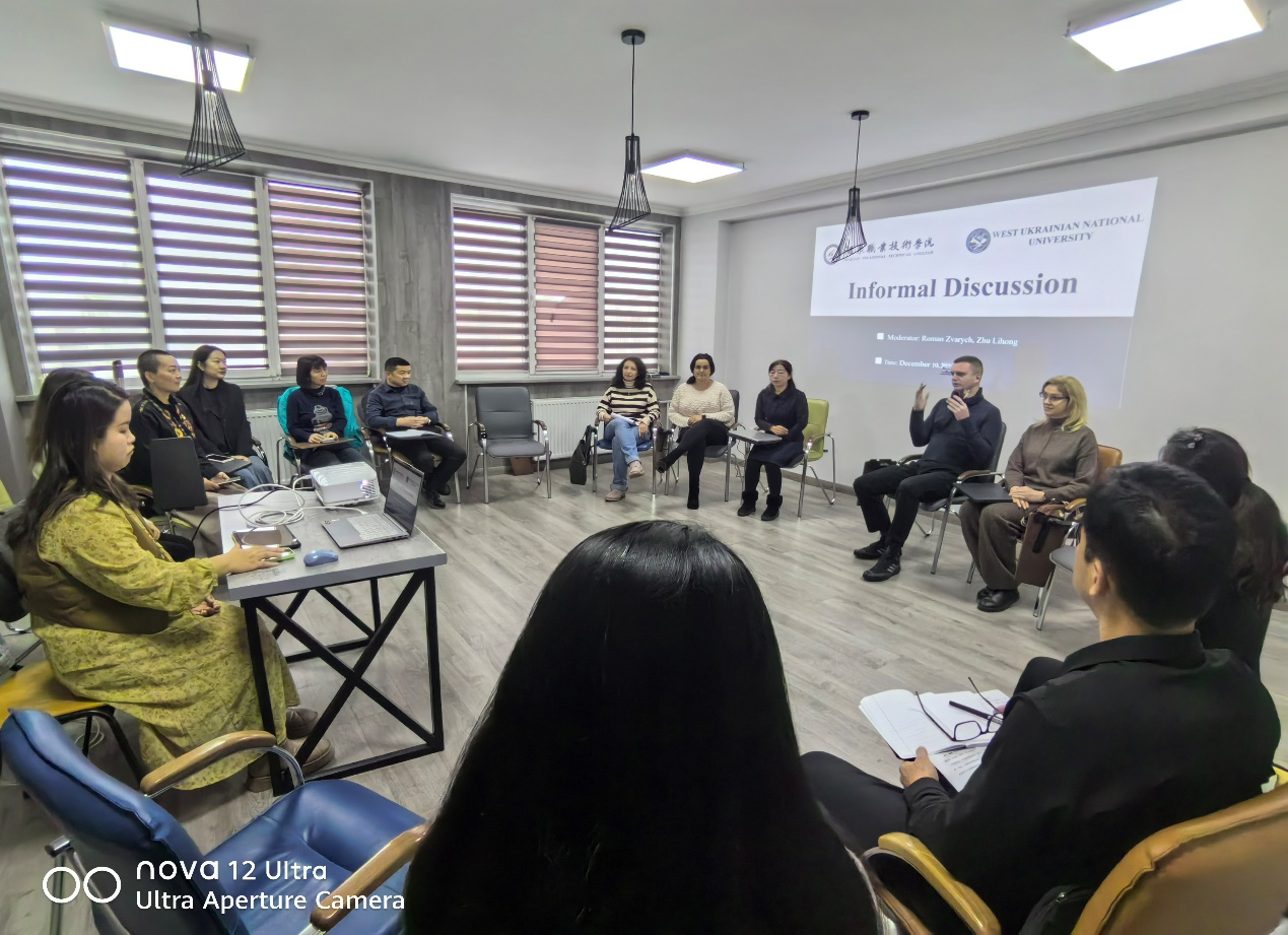 为了加强国际交流与合作,进一步优化专业建设,12月10日上午我院与乌克兰西部国立大学国际关系教育与研究中心、金融与会计学院举行了交流座谈会。会议由朱丽红副教授和乌克兰西部国立大学国际关系教育与研究中心Roman Zvarych教授共同主持,我院在乌留学人员和乌克兰西部国立大学相关专业教师参加了座谈会。