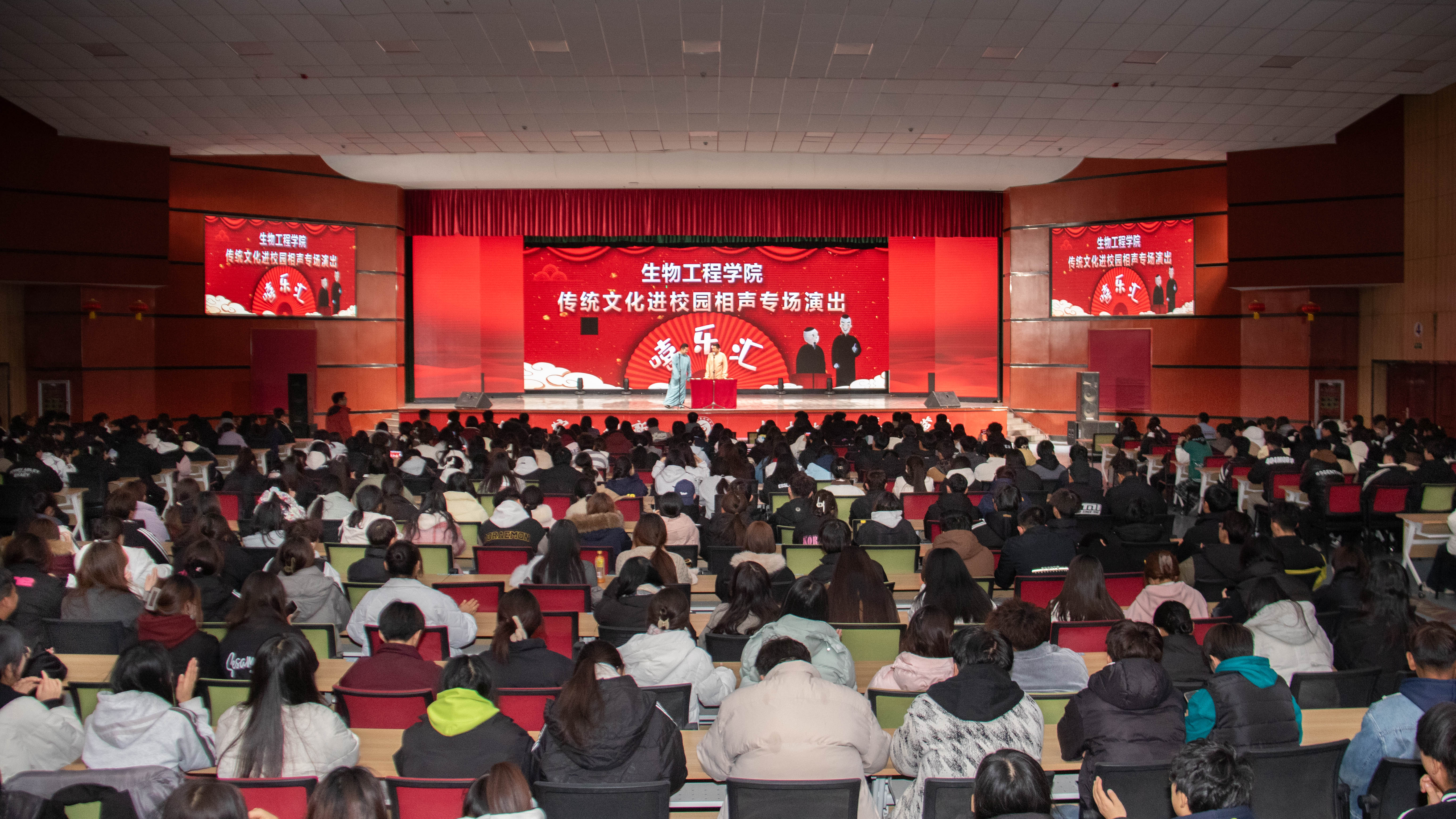 为增强大学生对传统文化的认同感和自豪感,丰富学生校园文化生活,拓宽学生文化视野,领略相声的独特魅力。生物工程学院于12月16日晚,在胡杨文化活动中心举办传统文化进校园相声专场演出,师生500余人共同观看了演出。