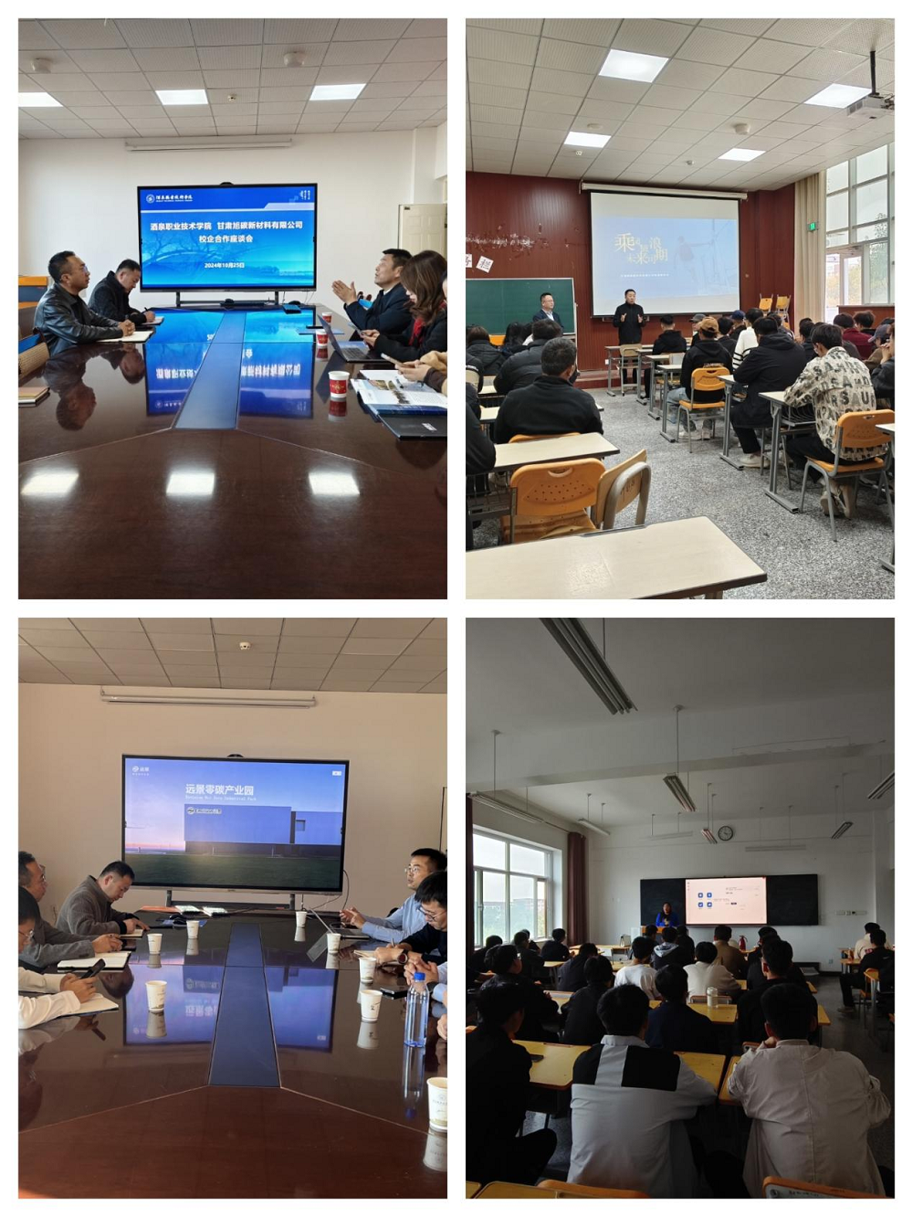 活动期间,学院领导班子与来访企业进行了深入座谈交流。其中甘肃旭碳新材料有限公司、甘肃光伏检测中心两家企业就校企合作开展“课堂进企业现场微工程师”特色项目,达成了合作意向,既创新了教学模式,能有效提升学生实践技能,又能满足企业对人才的灵活需求,实现双赢。
