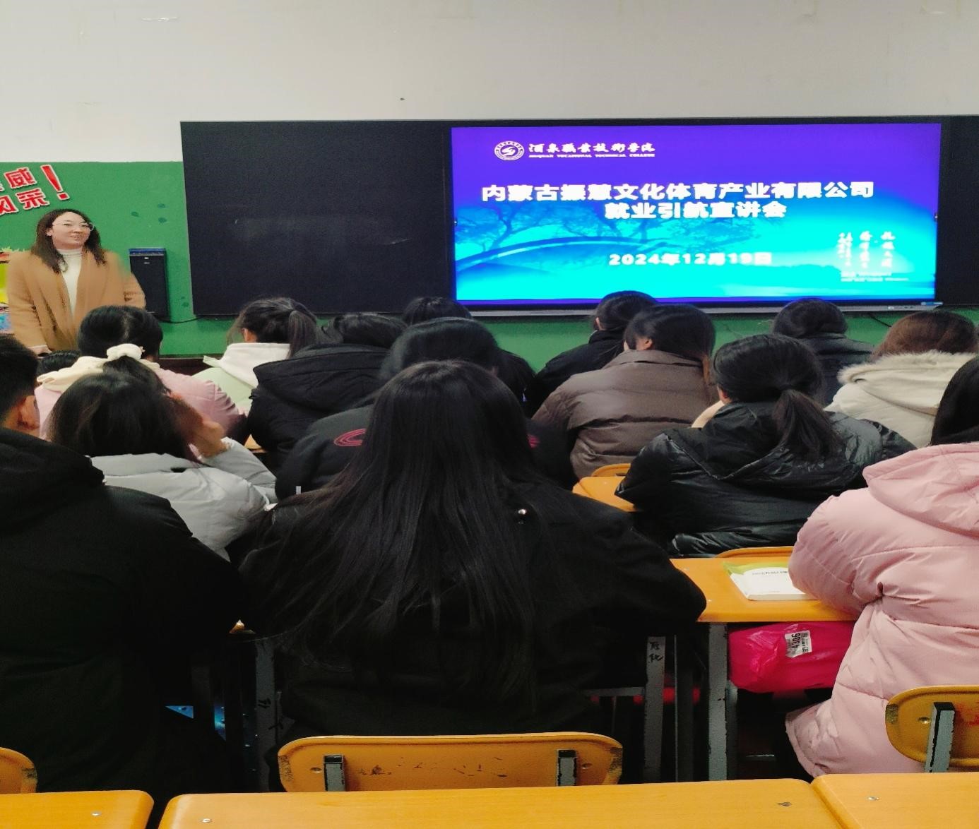 为加快推进体育与健康学院2025届毕业生高质量就业, 12月19日下午,内蒙古振慧文化体育产业有限公司在我校体育馆开展2025年招聘宣讲会,让2025届毕业生了解了现阶段健身行业的发展状况和该企业用人需求及企业发展方向。