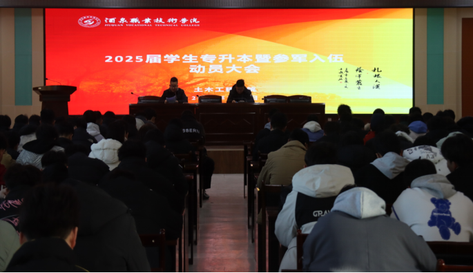 为全面做好2025届毕业生征兵、专升本动员工作,帮助学生了解入伍优惠政策和专升本考试招生政策,2025年1月6日上午,土木工程学院于图书馆四楼会议室召开了2025届学生专升本暨参军入伍动员大会。