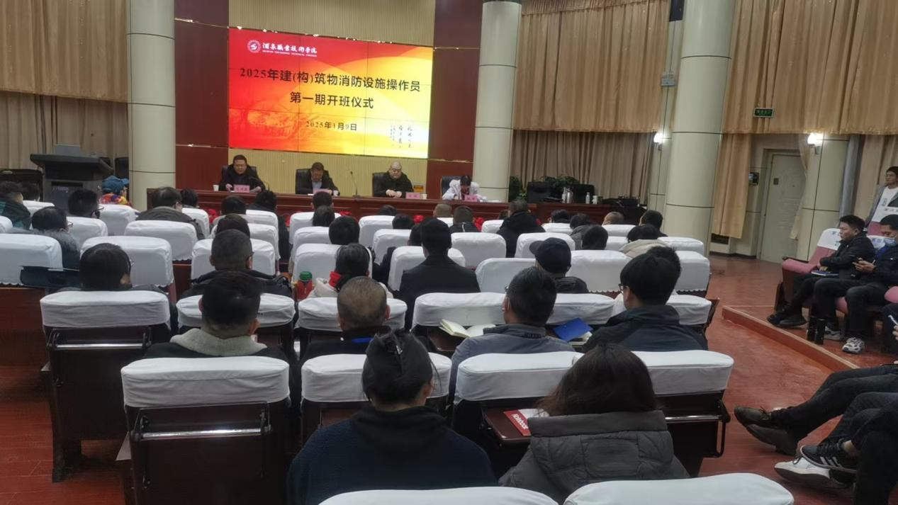 1月9日上午9:00,2025年建(构)筑物消防设施操作员第一期培训班开班仪式在逸夫报告厅举行。酒泉职业技术学院培训处处长张祥、甘肃德合坤信息安全技术有限公司董事长王锐、本期培训班班主任殷璐出席了开班仪式,会议由化工学院党支部副书记孔祥波主持。本期培训班学员共72人参加了会议。