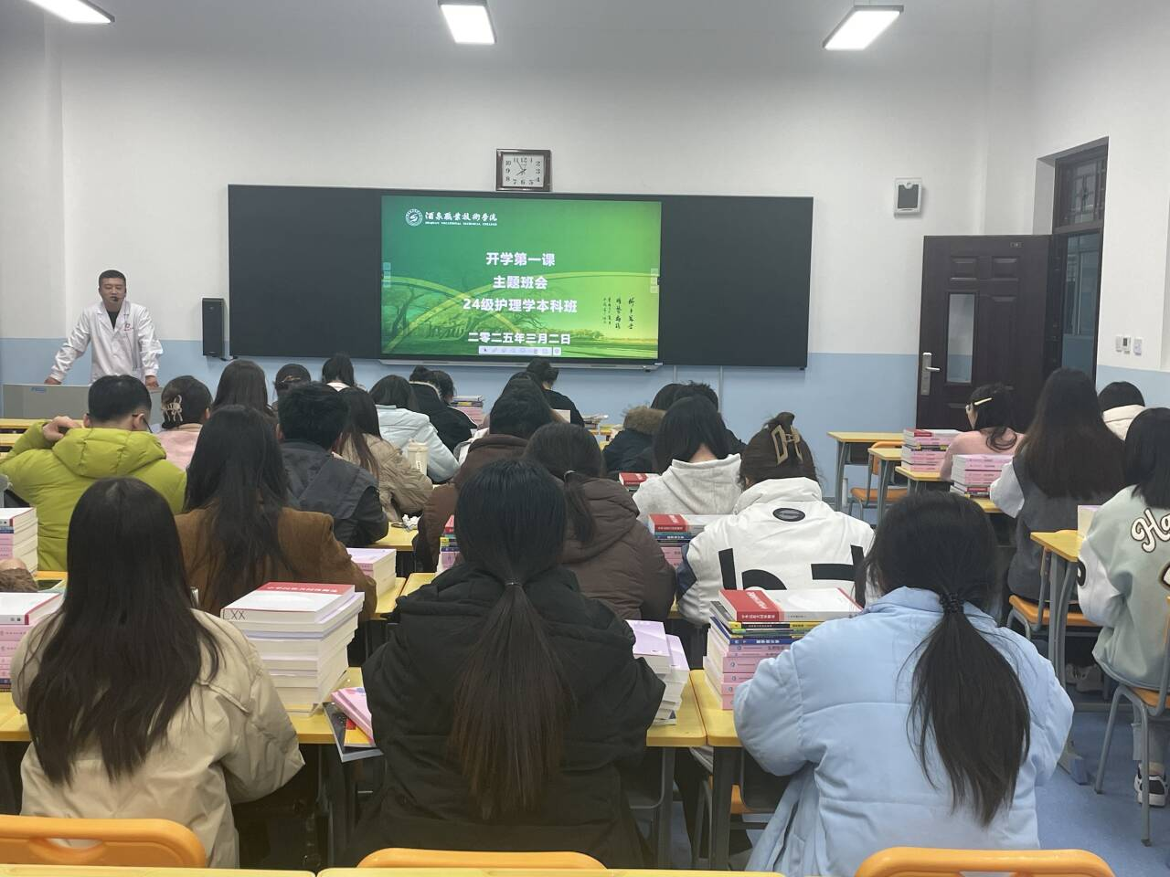 首先,各班积极组织收看了由甘肃省教育厅制作的《“激扬少年志”2025春季学期开学第一课》,从思想上引导大学生树立远大理想,热爱伟大祖国。其次,班主任从返校后的心理调适、学风建设、安全教育、防电信诈骗、民族团结、心理健康、行为养成等7个方面开展新学期入校教育,鼓励学生树立远大理想,养成良好学风,增强纪律意识,恢复良好行为习惯,以崭新的姿态投入到学校生活。最后,各班级从开课准备、卫生纪律、宿舍管理等方面给同学们提出了具体要求,引导同学们做好新学期心理建设。