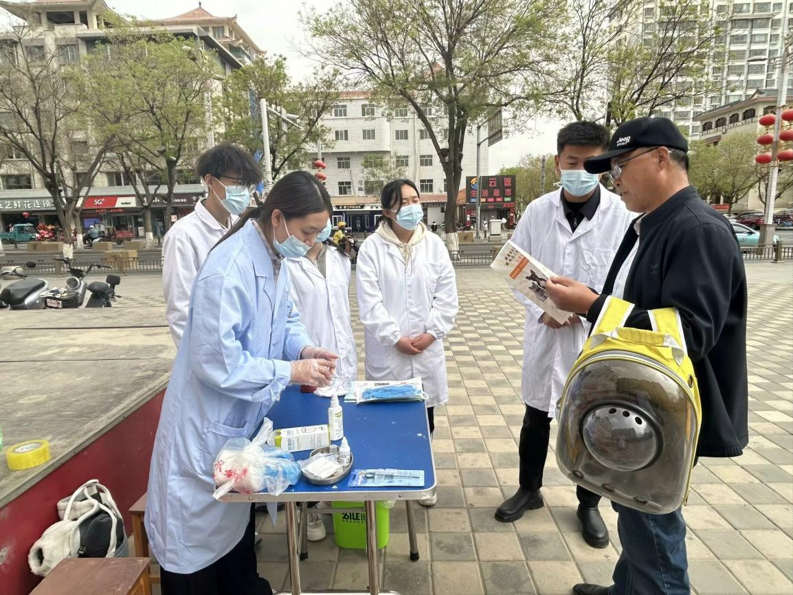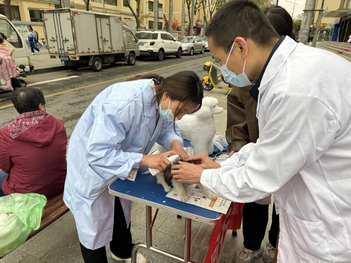 在社区广场,动物医学专业志愿者们搭建起萌宠健康驿站,依托《小动物疾病学》《兽医临床诊断学》等专业课程知识,现场开展五大特色诊疗服务:老年犬口腔健康评估、幼宠发育监测、皮肤病专项诊疗、触诊视诊基础体检、疫苗接种咨询等。现场志愿者还开设了萌宠礼仪课堂,搭配200余册《科学养宠手册》进行科普宣传,由志愿者示范纠正吠叫、护食、随地大小便等不良行为,将文明理念融入40余个家庭,有效提升了社区居民的科学养宠意识。