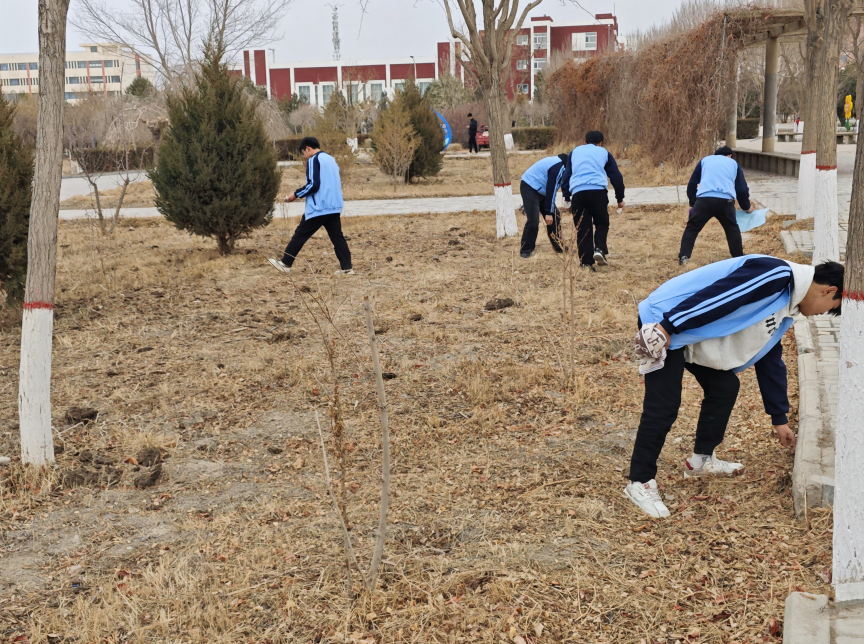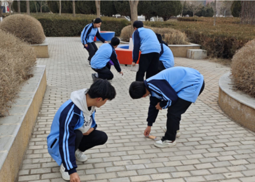 负责校园美化的小组穿梭于图书馆周边的各个角落,认真清理路面,绿化带中的落叶、纸屑等杂物;宣传栏清洁的志愿者们擦拭宣传栏的玻璃,去除上面的灰尘和污渍。