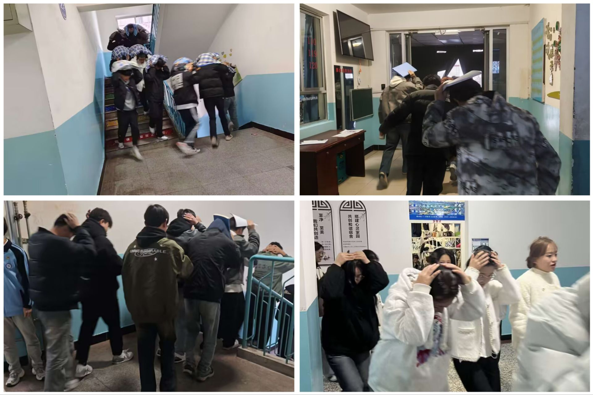 演练前,学院制定了详细的地震应急疏散演练方案,明确职责、疏散路线及注意事项。同时,各班级提前开展地震应急知识普及教育,向同学们讲解地震来临时的避震方法、疏散要点等内容,确保每位同学熟悉应急流程。随着警报声响起,地震应急疏散演练正式开始。公寓学生迅速做出反应,按照预先制定的方案,同学们立即躲在拐角,用枕头、棉被等物品保护头部,进行紧急避险。后在安全员的指挥下,同学们用湿毛巾捂住口鼻,弯腰低姿,沿着预定的疏散路线,迅速、有序地撤离至指定的安全区域,整个疏散过程紧张有序,没有出现拥挤、推搡等现象,经统计,所有师生均已安全疏散。
