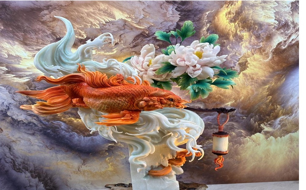 权伟伟面塑作品:《富贵跃锦》