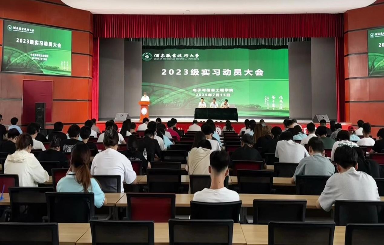 7月15日,电子与信息工程学院在胡杨文化活动中心召开2023级学生岗位实习动员大会。学院班子成员、班主任、实习指导老师及2023级全体实习学生参加会议。会议由学院副院长张吉强主持。