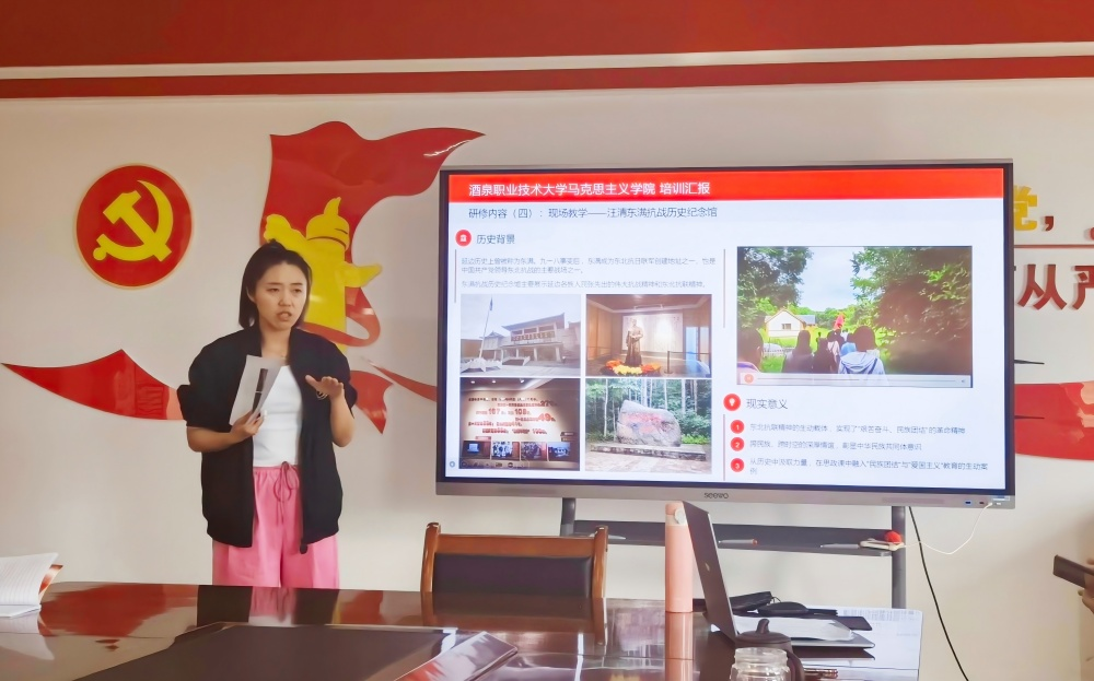 本次展示汇报会以“赋能思政教学,夯实理论根基”为核心主题。上半年,我院已组织学院教师分批次参与了“全省中华民族共同体概论培训班”“全省高校思政课骨干教师培训班”“全省大中小学思政课一体化建设骨干教师培训班”“甘肃省职业院校教师数字素养提升培训班”“大庆师范学院‘老精神·新大庆’全国高校思政课教师主题研修”“延边大学‘延边行·中华情’主题研修”等高水平培训活动。汇报会现场,8位参训教师结合自身培训所学、教学实践与科研思考,从不同维度分享了感悟与收获。