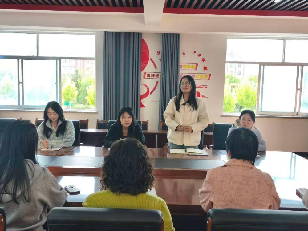 在活动第二环节,青年教师通过个人介绍,展示了教育背景、教学理念及未来的发展规划。随后,指导教师寄语青年教师,李永红老师强调,老师们要多学习、多思考,对自己高标准、严要求,不断提升专业素养,屈玉霞老师强调新老师要有朝气、有活力,敢于创新,善于努力,在教学工作中展现自己的特色与风采。