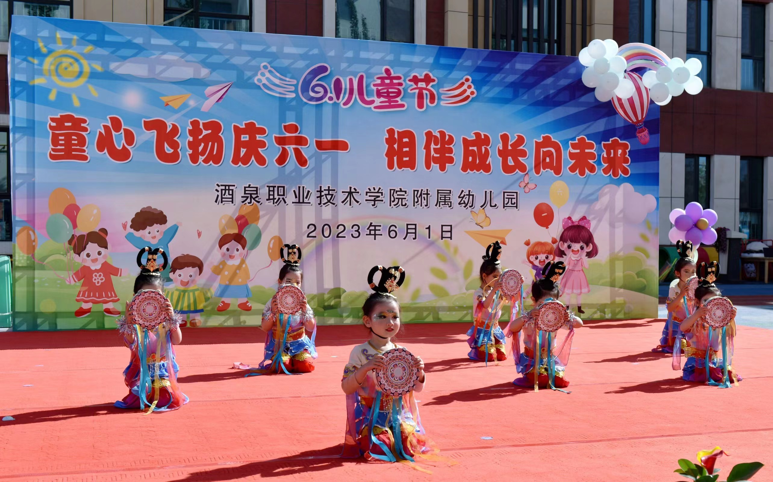 要闻快递 > 正文2023年5月31日上午,酒泉职业技术学院附属幼儿园老师和孩子们举行了“童心飞扬庆六一·相伴成长向未来”文艺演出庆祝活动。