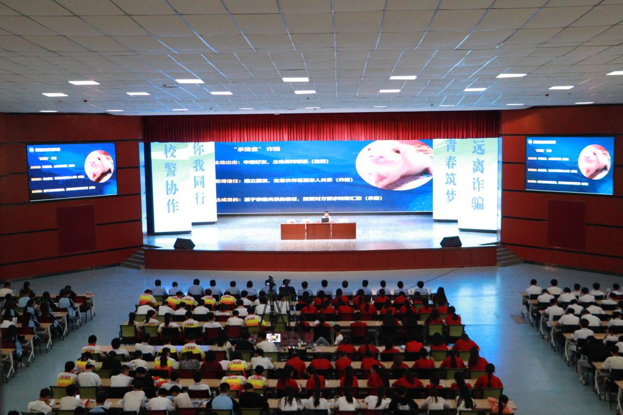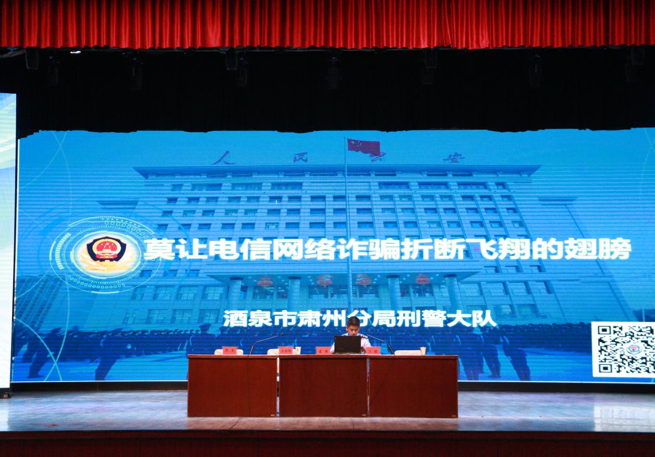 为进一步提高在校师生的防范意识,有效遏制涉校电信网络诈骗案件发生,预防学校学生、教职工遭受电信网络诈骗侵害,严厉打击电信诈骗活动,净化校园及周边环境,学校联合酒泉市公安局肃州分局刑侦大队党支部在胡杨文化活动中心开展防电信网络诈骗集中宣传进校园宣讲会。肃州分局刑侦大队全体民警、学校相关部门、各二级学院师生代表600余人现场聆听讲座。本次宣讲会采用线下与线上相结合的方式进行,覆盖全员,各学院利用晚自习组织全体学生在线观看宣讲会。
