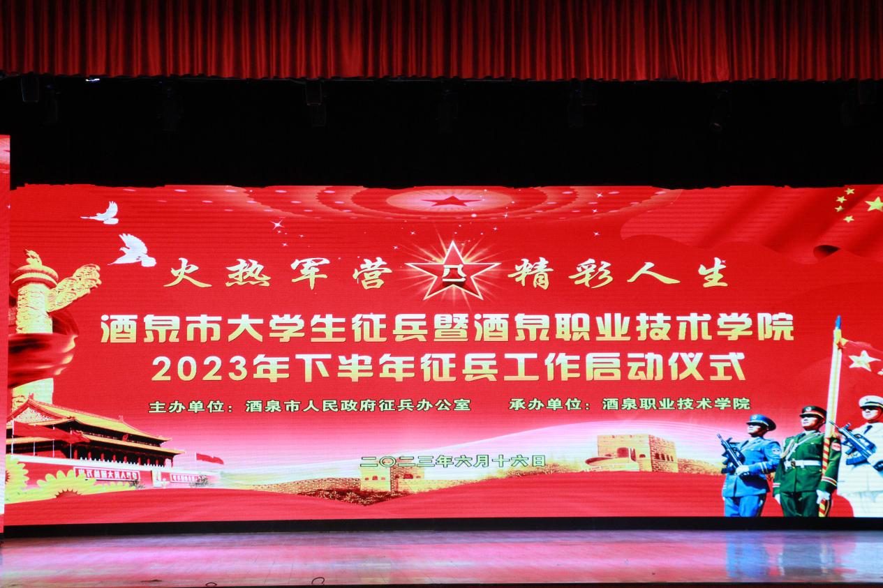 为把全市大学生征兵工作做的更实、更好、更有成效,6月16日下午,酒泉市大学生征兵暨酒泉职业技术学院2023年下半年征兵工作启动仪式在学校胡杨活动中心举行。酒泉市征兵办公室、肃州区征兵办公室相关领导及学校党委委员、副校长施荣出席仪式,学校征兵工作站负责人、各学院中层领导、师生代表500余人参加启动仪式,仪式由学生处副处长刘明主持。