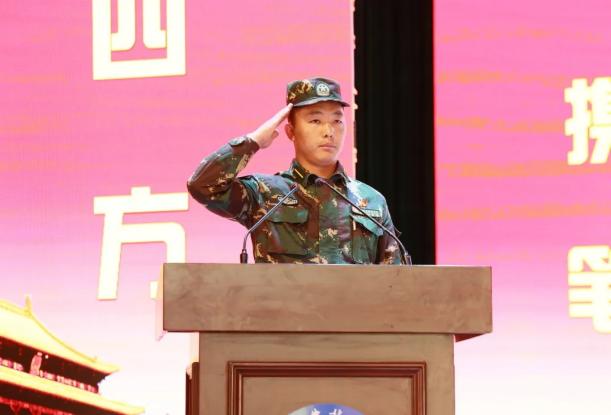 仪式在雄壮激昂的强军战歌中拉开帷幕,肃州区征兵办公室主任、肃州区人武部政治委员王炳军上校代表肃州区征兵办向高校大学生发出强烈号召,鼓励当代大学生勇敢站到时代前列,积极履行宪法赋予的服兵役义务,以应征入伍的实际行动书写对伟大祖国的忠诚。