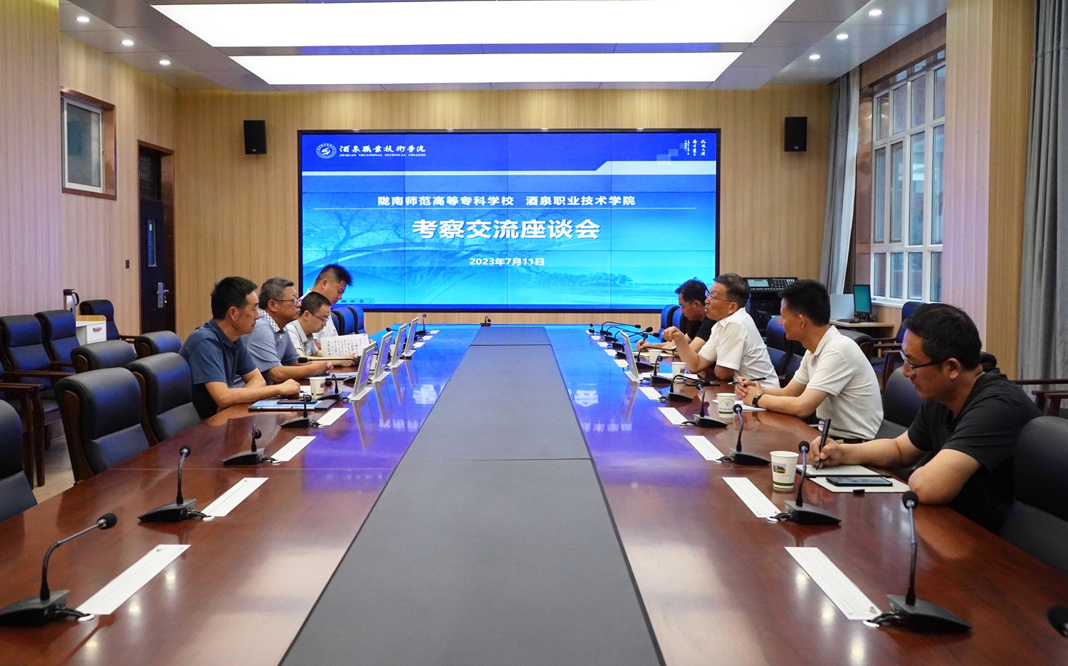 7月11日,陇南师范高等专科学校党委书记余学军带领相关部门人员一行6人来我校考察交流。党委书记、校长易志军陪同考察。