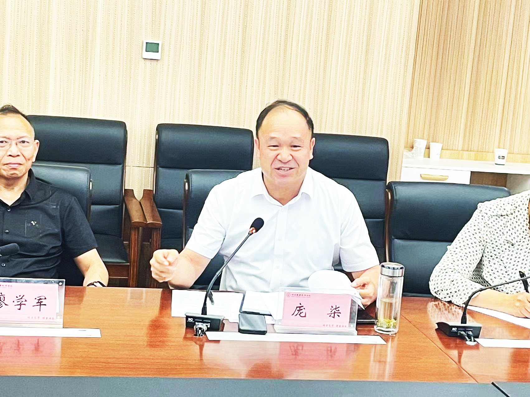 要闻快递 > 正文8月4日,甘肃自然能源研究所所长周剑平一行陪同英国利兹大学李慷教授、中国航天动力研究院研究员廖学军来我校考察交流,酒泉市市委常委、副市长庞柒,酒泉市科技局党组成员、副局长马征,学校党委书记、校长易志军,党委委员、副校长王金明陪同。学校科研处、宣传统战部、教务处等机关部门和相关二级学院负责人参加了座谈。