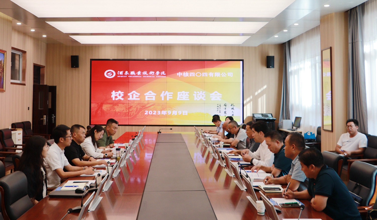 9月9日,中核四〇四有限公司朱江处长一行五人来我校进行校企合作交流座谈。市委教育工作领导小组秘书组组长、市委教育工委书记、市教育局党组书记、局长杨培荣,学校党委书记、校长易志军,学校党委委员、副校长王立智,招生就业处、合作发展处、各二级学院相关人员参加了座谈。