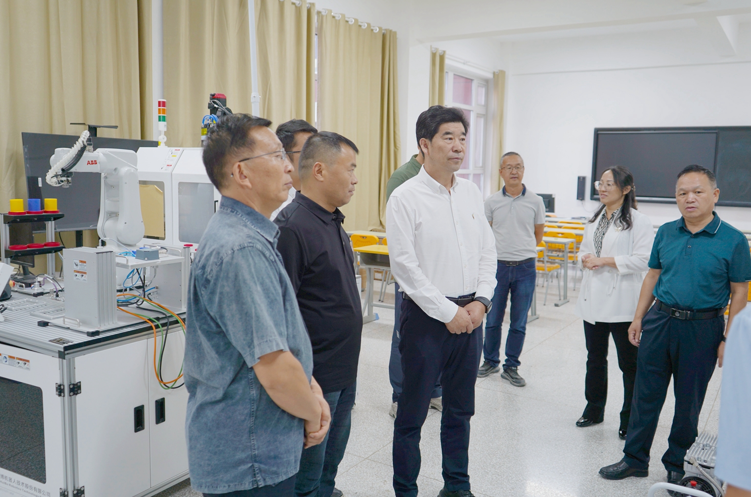 会后,朱江一行先后参观了智能制造中心、新能源技术国际共享服务中心、化工实训中心,了解了学校办学硬件条件和实训基地建设情况。(信息员:招生就业处 张辉)