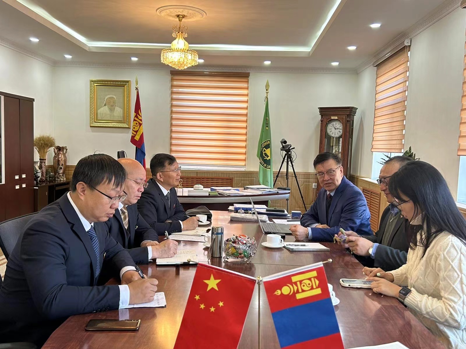 12月1日上午,出访团拜会了蒙古国中国商会,对中国企业在蒙古国的现状做了全面了解,为秉持“教随产出、产教同行”理念,依托“走出去”企业,开展境外“飞天工坊”建设找到了实体支撑。