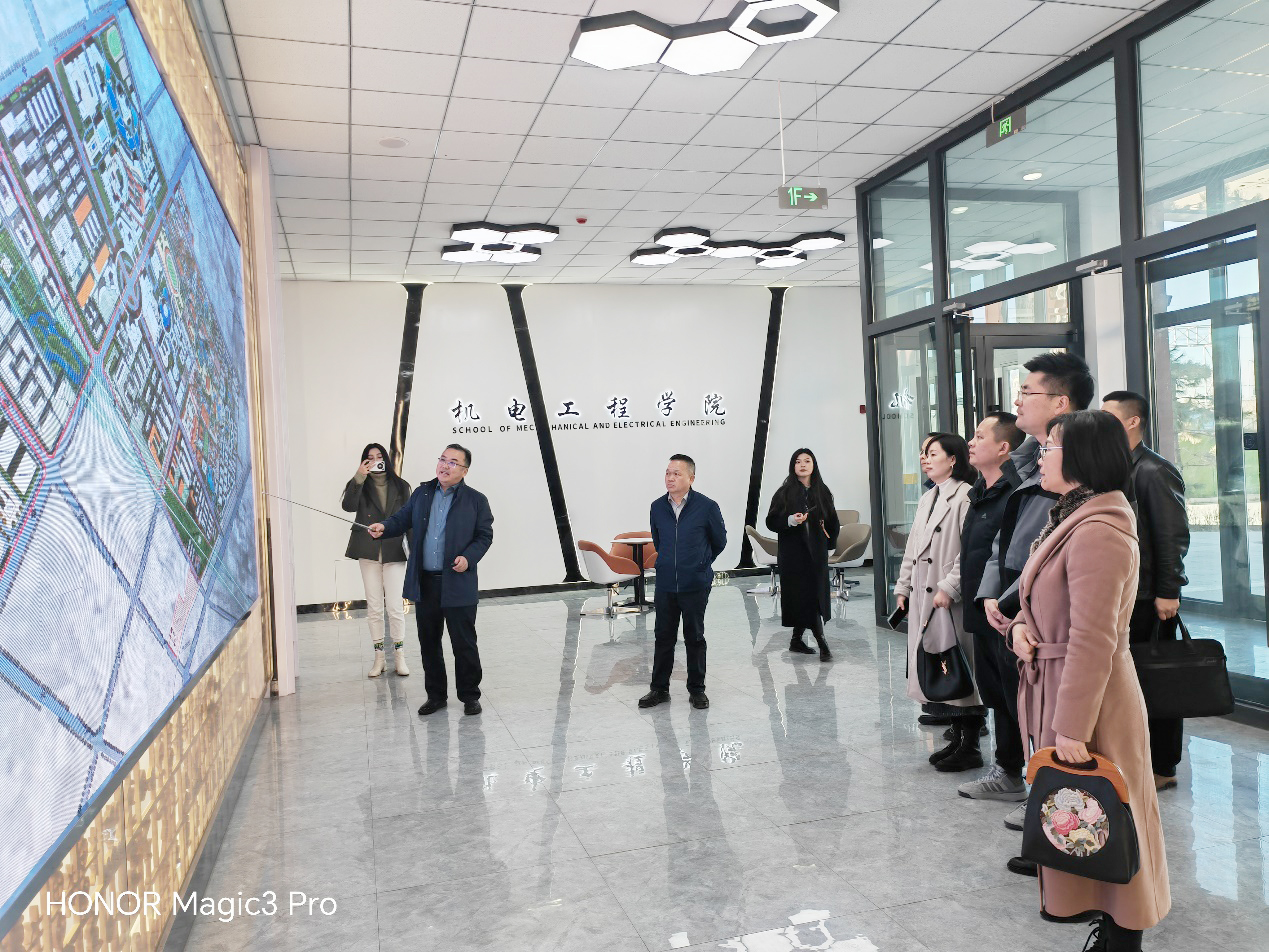 谢波副总经理一行在王立智副校长的陪同下实地参观了智能制造中心、新能源技术国际共享服务中心、法国施耐德绿色低碳产教融合实训中心和化工实训中心等校内实训基地。