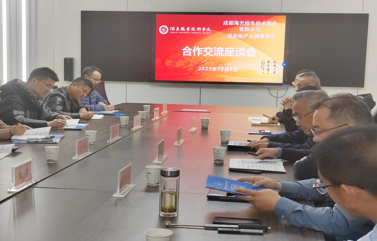 2023年12月5日上午,成都海光核电技术服务有限公司党委委员、副总经理谢波等一行七人来我校开展核电运维人员培养培训方面工作的交流,酒泉职业技术学院党委委员、副校长王立智,党委委员、宣传部长李文有、招生就业处、新能源工程学院、化工学院及机电工程学院负责人参加了考察交流。