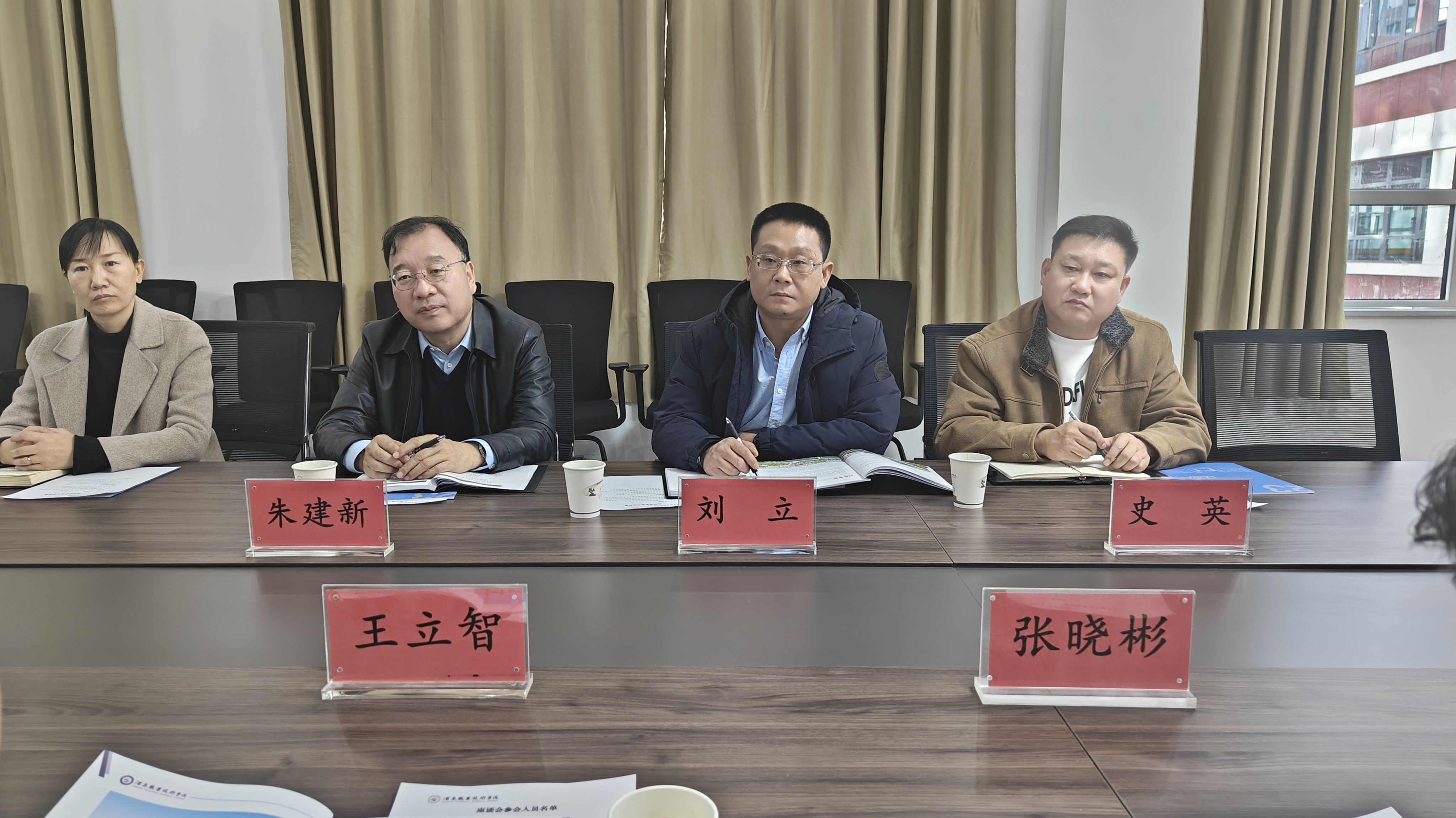 学校党委委员、副校长王立智、合作发展处处长孙俊峰、招生就业处副处长张晓彬、新能源工程学院党支部副书记李亮和机电工程学院副院长赵国鑫参加交流座谈。王立智对朱建新和刘立一行来校座谈交流表示热烈欢迎,介绍了学校办学历史、办学特色、成果成绩以及学院学科专业、师资力量、平台建设、科研方向、人才培养等方面情况。