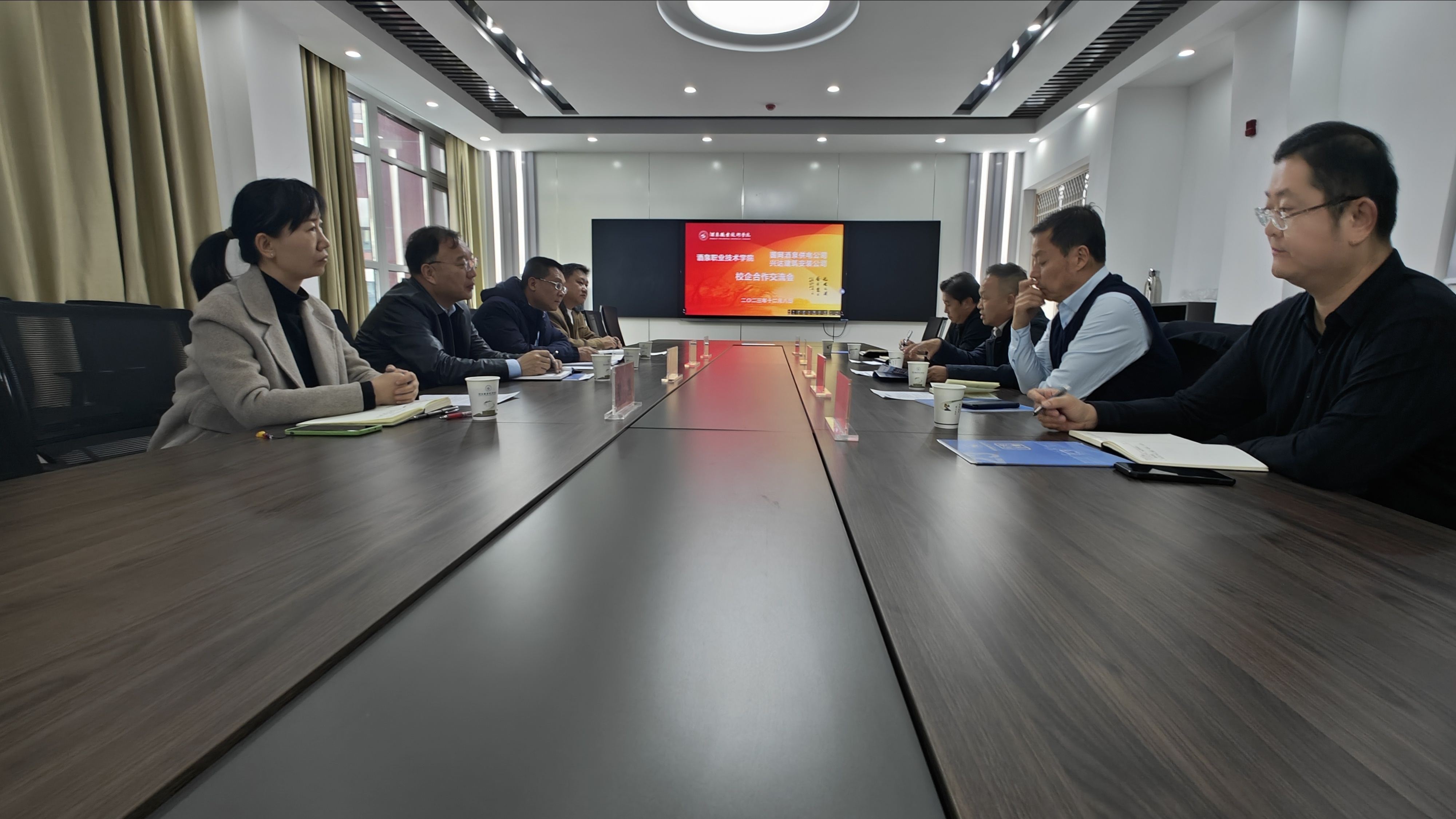 12月8日,国网甘肃省电力公司酒泉供电公司三级职员朱建新、党委组织部(人力资源部)副主任骆慧、酒泉市兴达建筑安装工程有限责任公司总经理刘立、办公室主任史英一行4人来学校开展校企合作交流。