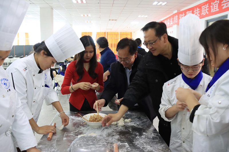 为丰富留学生校园文化生活,体验中国传统文化,进一步体现学校对留学生人文关怀,2024年元旦前夕,国际交流学院、马克思主义学院、旅游与烹饪学院共同举办“庆元旦 结对子 关爱留学生”联谊活动,联谊活动包括三个环节,分别是留学生书画展暨师生书画现场交流、留学生结对关爱活动和包饺子文化体验活动。党委副书记许军,党委委员、纪委书记、监察专员魏韡,党委委员、副校长王金明,党委委员、副校长施荣等参加活动。