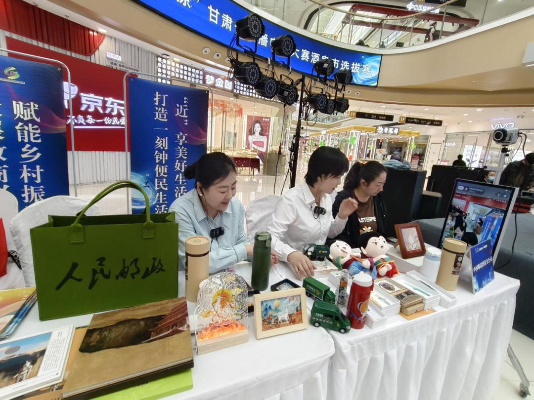 启动仪式现场设置了临时直播间和特色产品展区,组织了中国邮政酒泉分公司、敦煌种业、盛天农业、丝路手信、家家百福香、大漠农林、玉门花海供销社等15家网货供应企业60余种产品现场展销,邀请了“中国集邮邮票百科”“漠漠邢姐”“戈壁甄选”等本地网红主播现场直播带货,为番茄、种子、香醋、挂面、肉苁蓉、人参果、文创工艺品等酒泉特色产品代言,采取“线上营销+线下展销”的方式,推动酒泉特色农产品“出圈”。