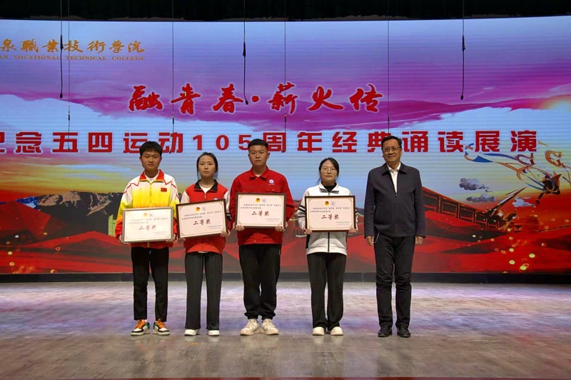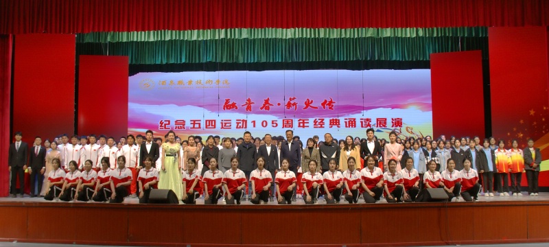 为深入贯彻落实党的二十大精神,纪念五四运动105周年和中国共产主义青年团建团102周年,4月29日,酒泉职业技术学院“融青春·薪火传”纪念五四运动105周年经典诵读大赛在胡杨文化活动中心成功举办。学校党委书记、校长易志军,党委委员、纪委书记、监察专员魏韡,党委委员、副校长王金明,办公室、教务处等部门负责同志,各学院领导班子成员、辅导员等出席并参加活动。