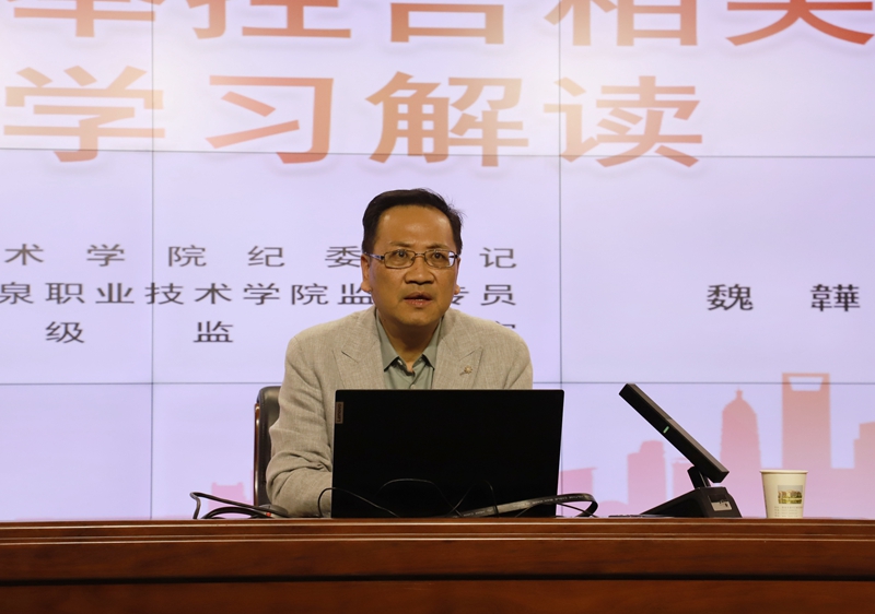 魏韡详细解读了《信访工作条例》的定位、特点和相关规定,阐释了《纪检监察机关处理检举控告工作规则》的背景意义、制定《规则》的目的依据和指导思想,结合典型案例对诬告陷害条款的相关规定进行了深入浅出、通俗易懂的讲解,让广大教职工更准确地把握新时代信访工作的原则和要求,更好地提升处理信访工作的能力和水平。