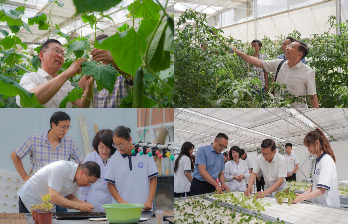 易志军全程参与生产示范区、水培区、育苗区等典型工作任务的实践教学,并现场与师生代表座谈交流。他勉励青年师生,一是树牢远大理想,将宏伟目标转化为动力和责任,认真践行“请党放心,强国有我”的青春誓言;二是练就过硬本领,像海绵吸水一样充分汲取知识和技能,不断提升自身能力和素质;三是勇当时代重任,以开阔的格局和高尚的情怀发扬“扎根大漠,荫泽苍生”的胡杨精神,踔厉奋发、勇做新时代的弄潮儿,自觉听从党和人民召唤,胸怀“国之大者”,努力学习、接续奋斗,在服务人民、奉献社会的过程中健康茁壮成长。