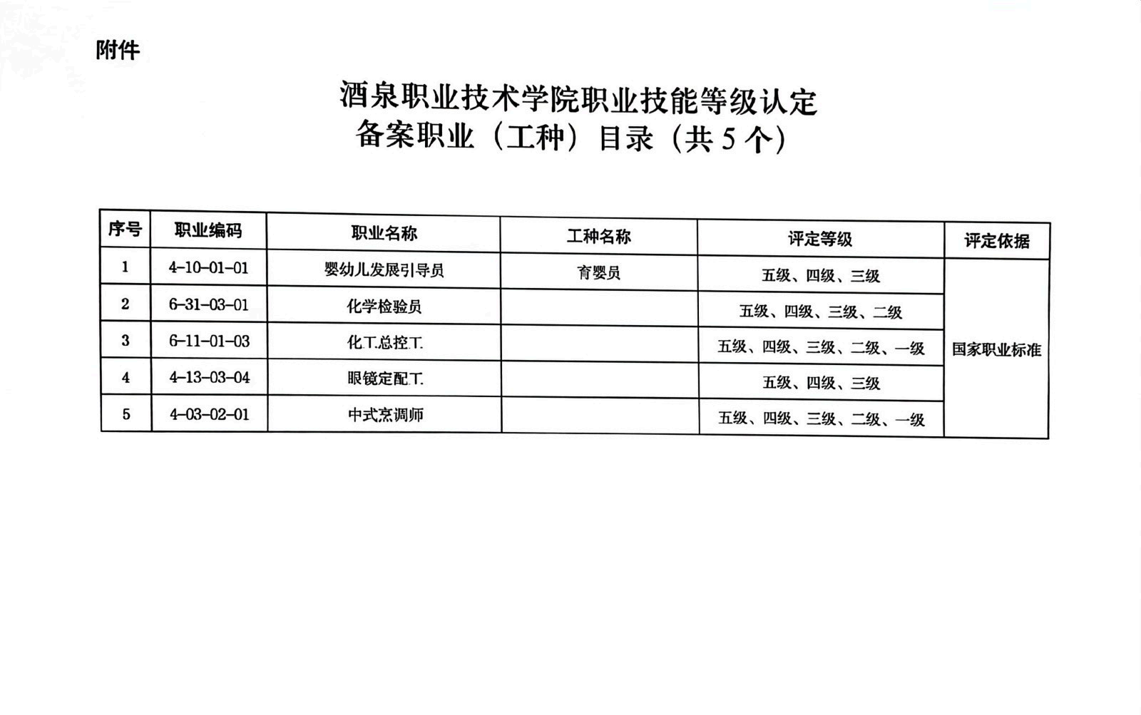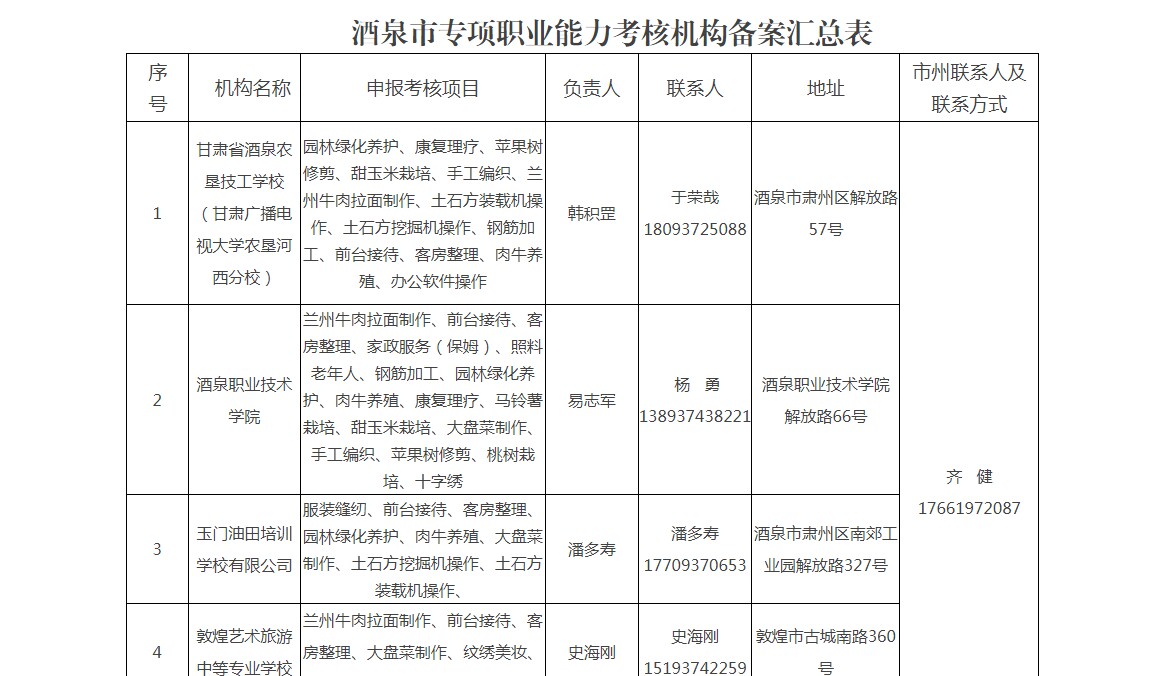 酒泉职业技术学院培训鉴定工种一览